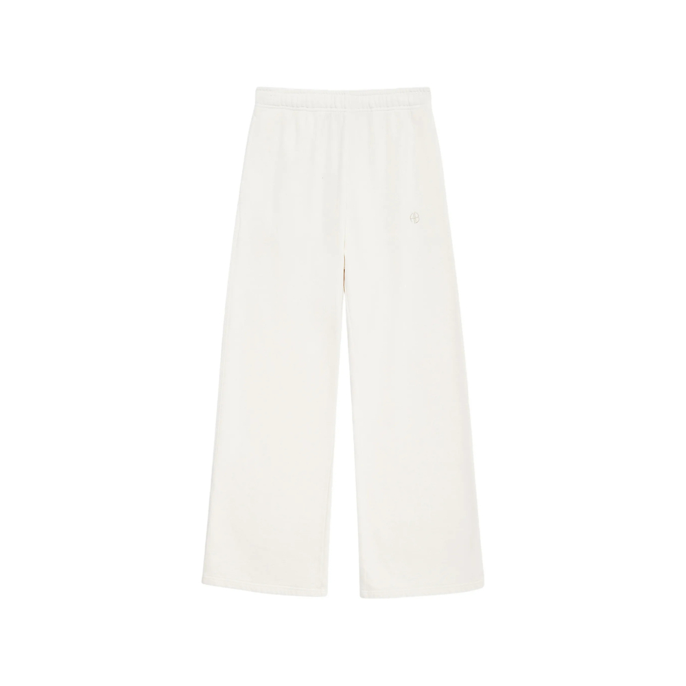 cream elasticated waistband wide-leg fit embroidered detail