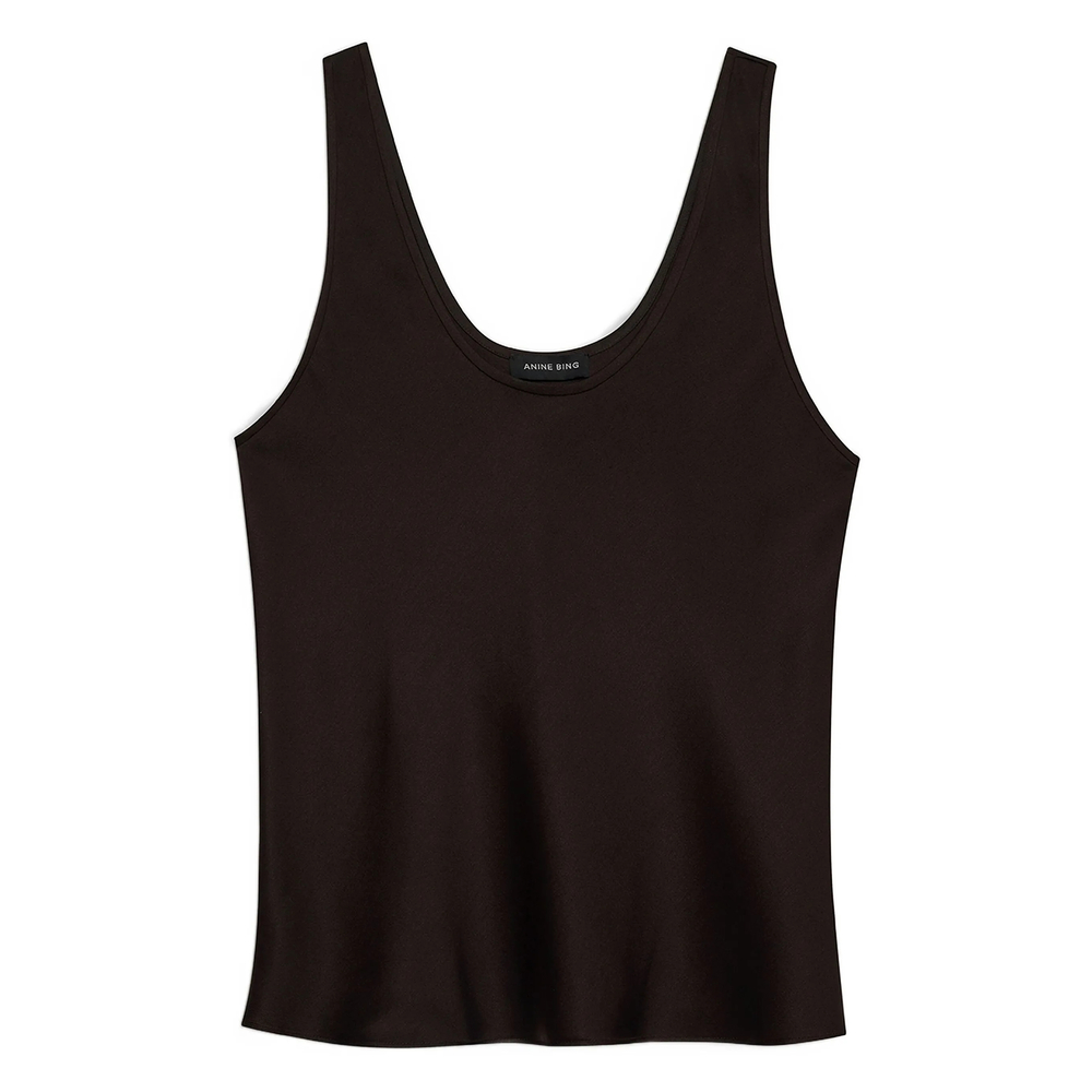 brown silk scoop neck sleeveless tonal stitching
