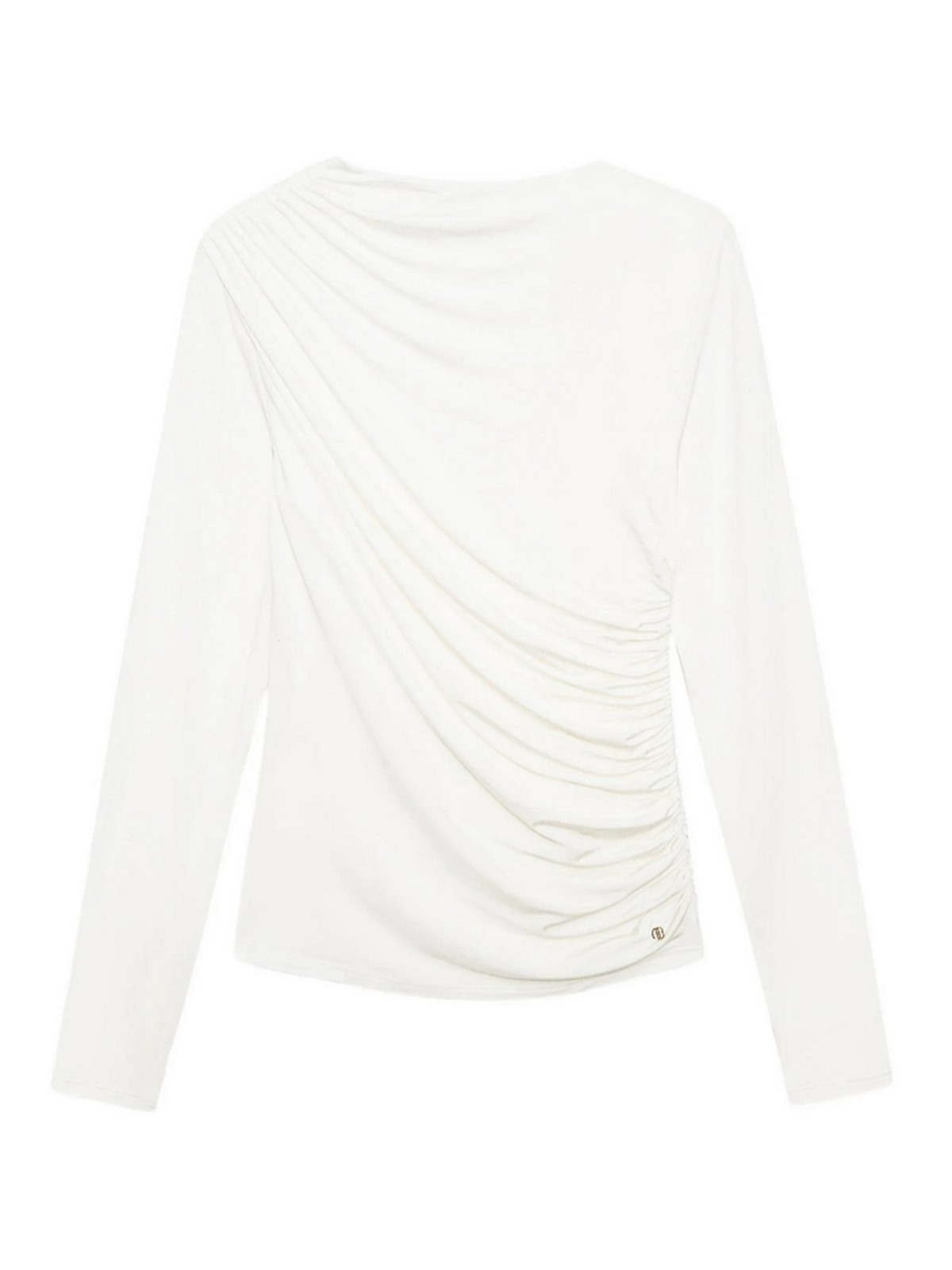 Manches longues et ourlet droit avec détails froncés blanc ivoire