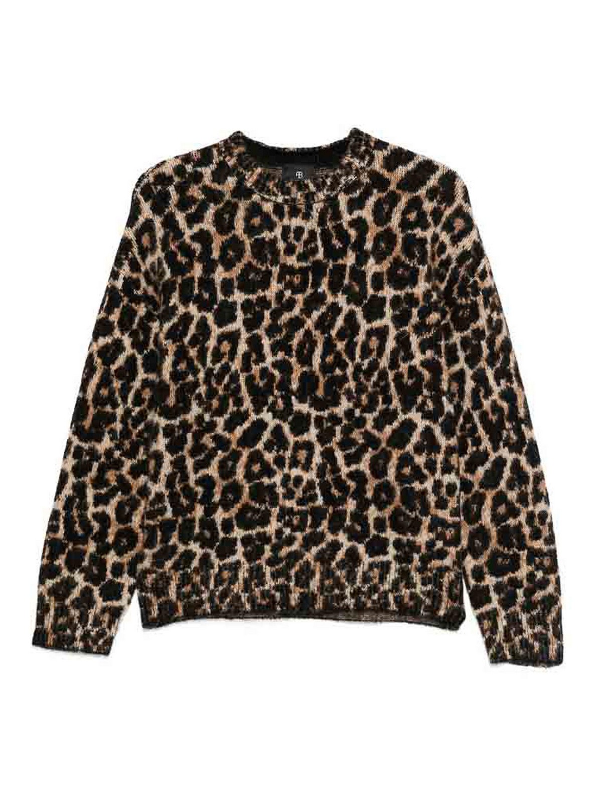 Col rond à manches longues et bordures côtelées à imprimé léopard marron et noir