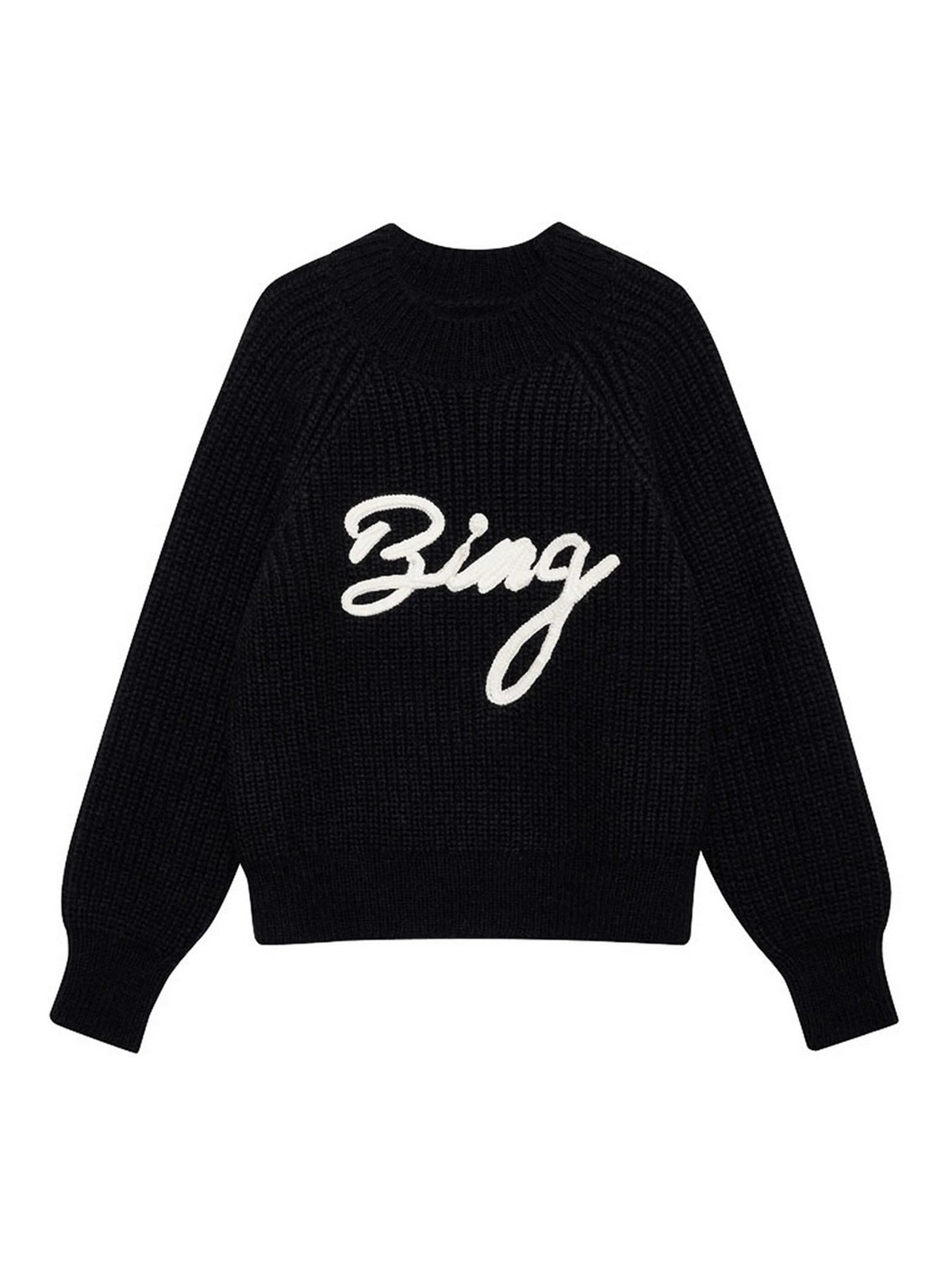 Logo noir, col rond, manches longues, tricot côtelé