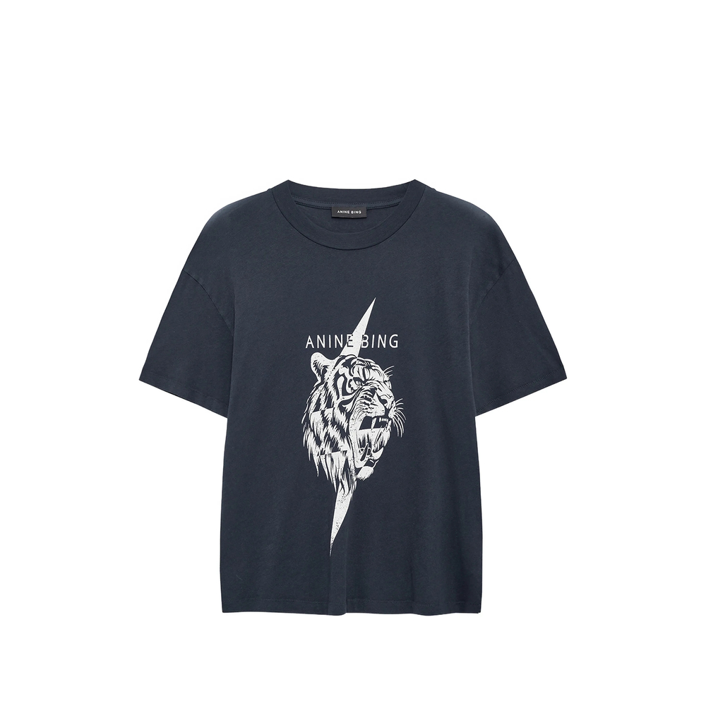 vintage black tiger graphic round neck short sleeves cotton