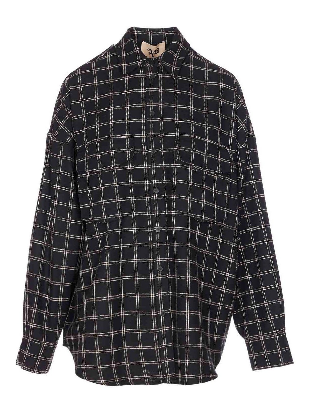 Chemise noire Aniye by Gwen avec boutons frontaux, col régulier, manches longues, poches boutonnées. Nom de la couleur du créateur: noir
