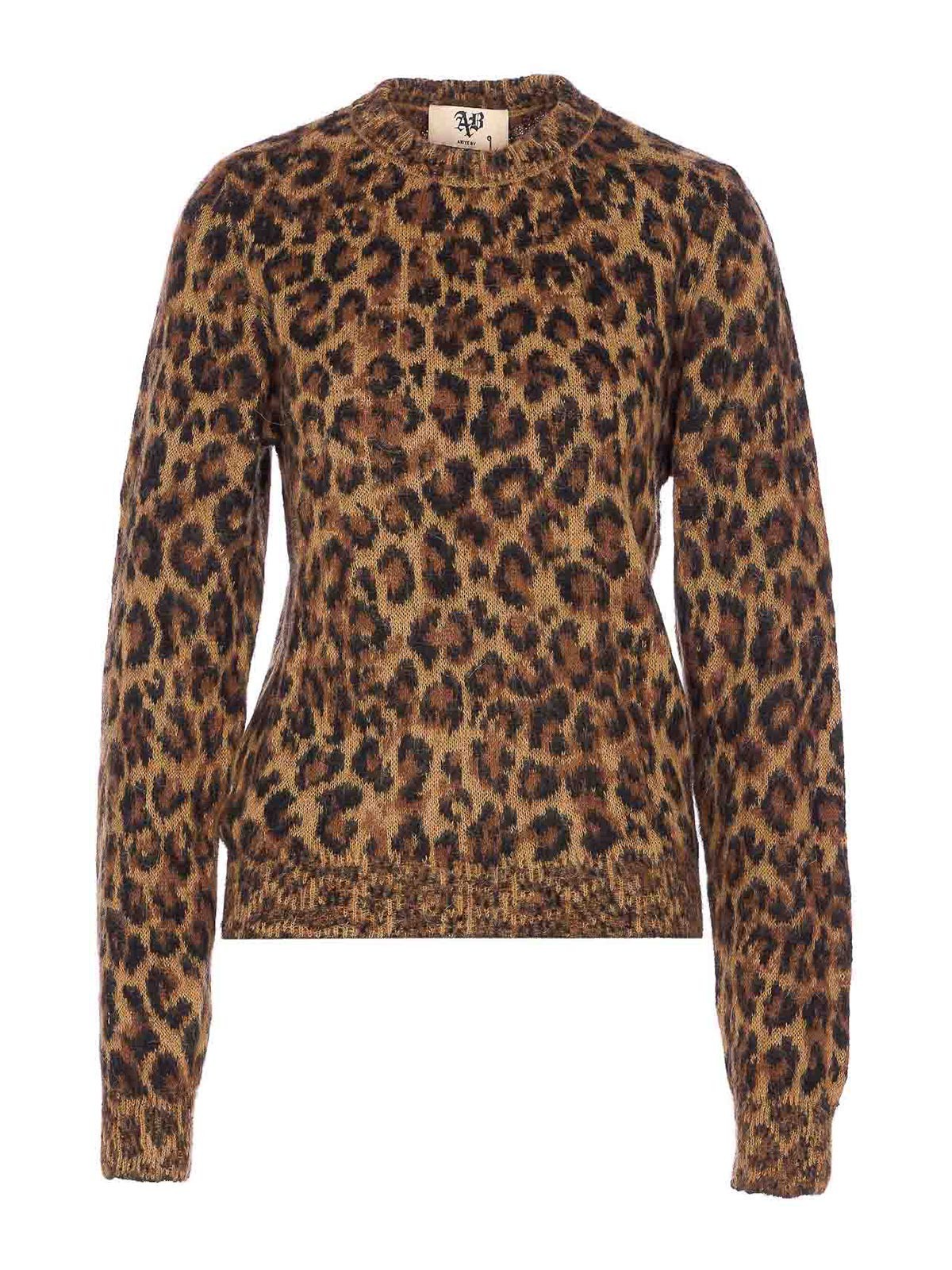 Pull Keira Aniye by Animalier à col rond à manches longues et imprimé léopard Nom de la couleur du créateur: marron