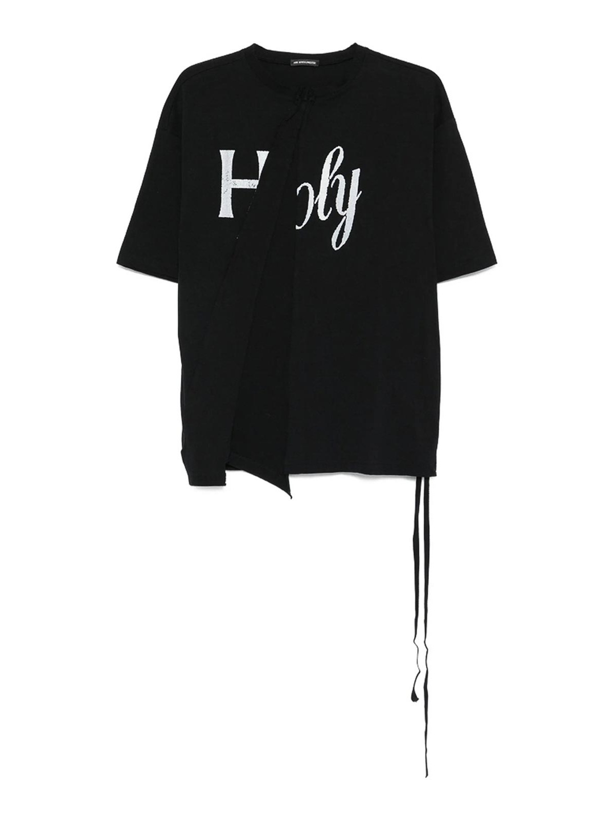 Ourlet asymétrique à imprimé graphique noir, manches courtes, col rond et cordon de serrage