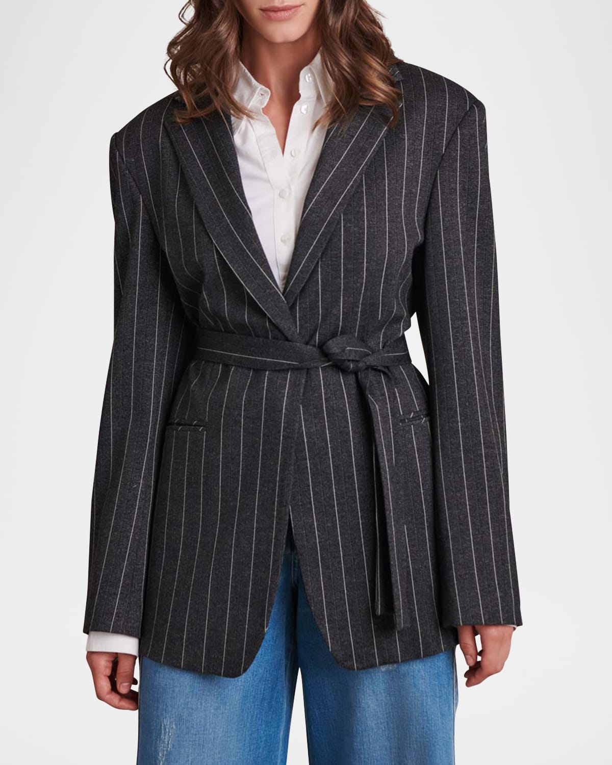 Byron Pinstripe Wrap-Front Blazer