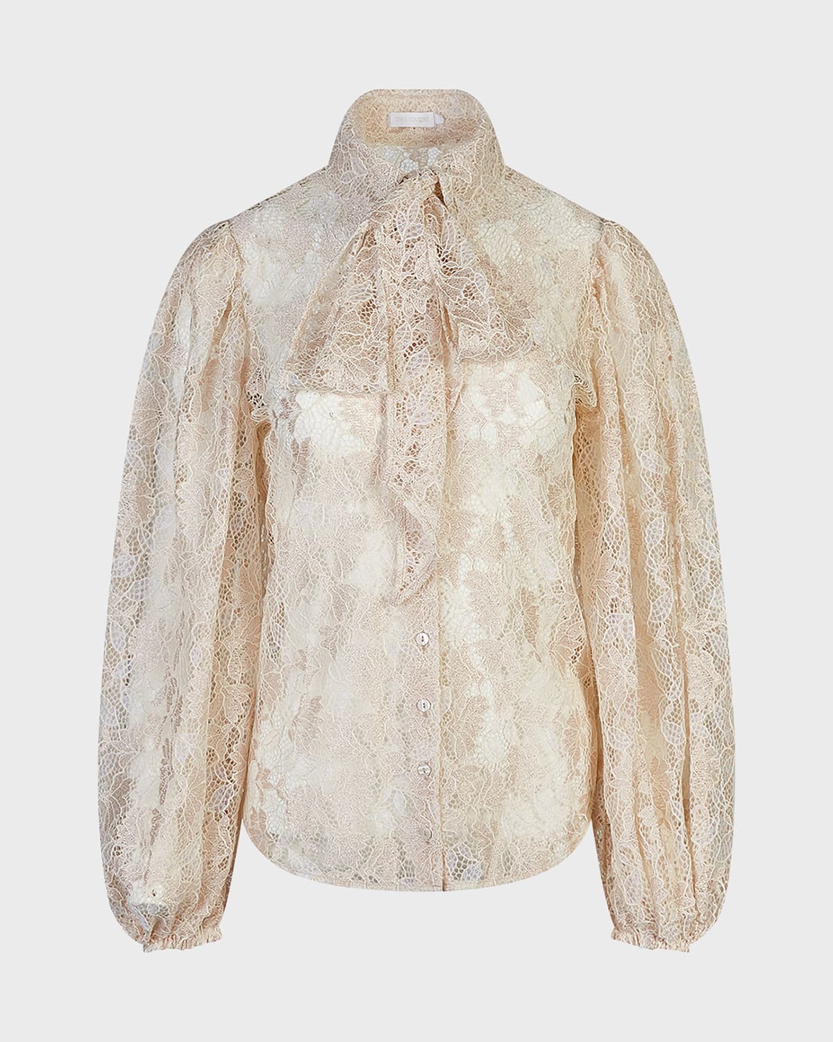 Anne Fontaine "Helene" shirt in sheer corded floral lace Point collar; button front Removable neck selftie Long blouson sleeves Elasticized cuffs Rounded hem Relaxed fit Nylon/polyamide/metallic fibers/nylon/polyamide Dry clean Made in France