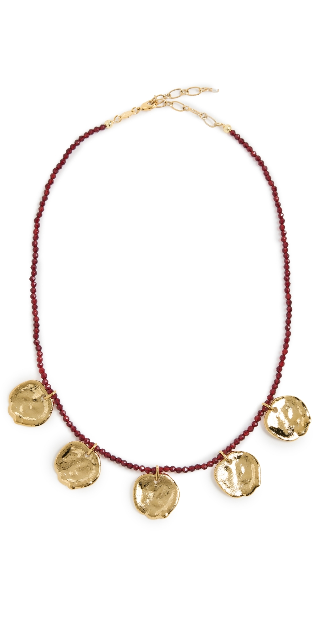 Glass bead detailing. Hammered pendants. Freshwater cultured rice pearls. 18k gold plated brass. Lobster claw clasp. Imported, China. Round freshwater cultured pearl. Measurements: Length: 17-19in / 43.0-48.0cm