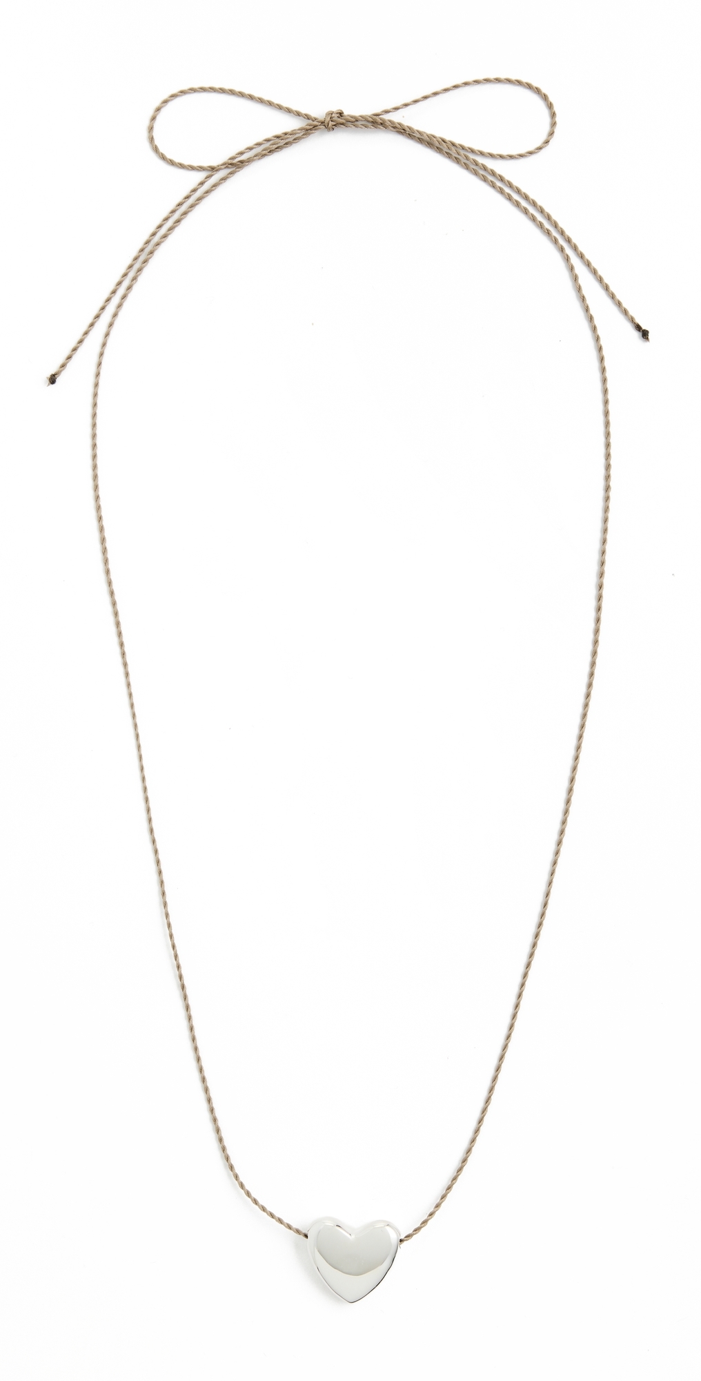 Puffy heart charm. Silk twine cord. Sterling silver. Tie closure. Imported, India. Measurements: Length: 38.5in / 98.0cm