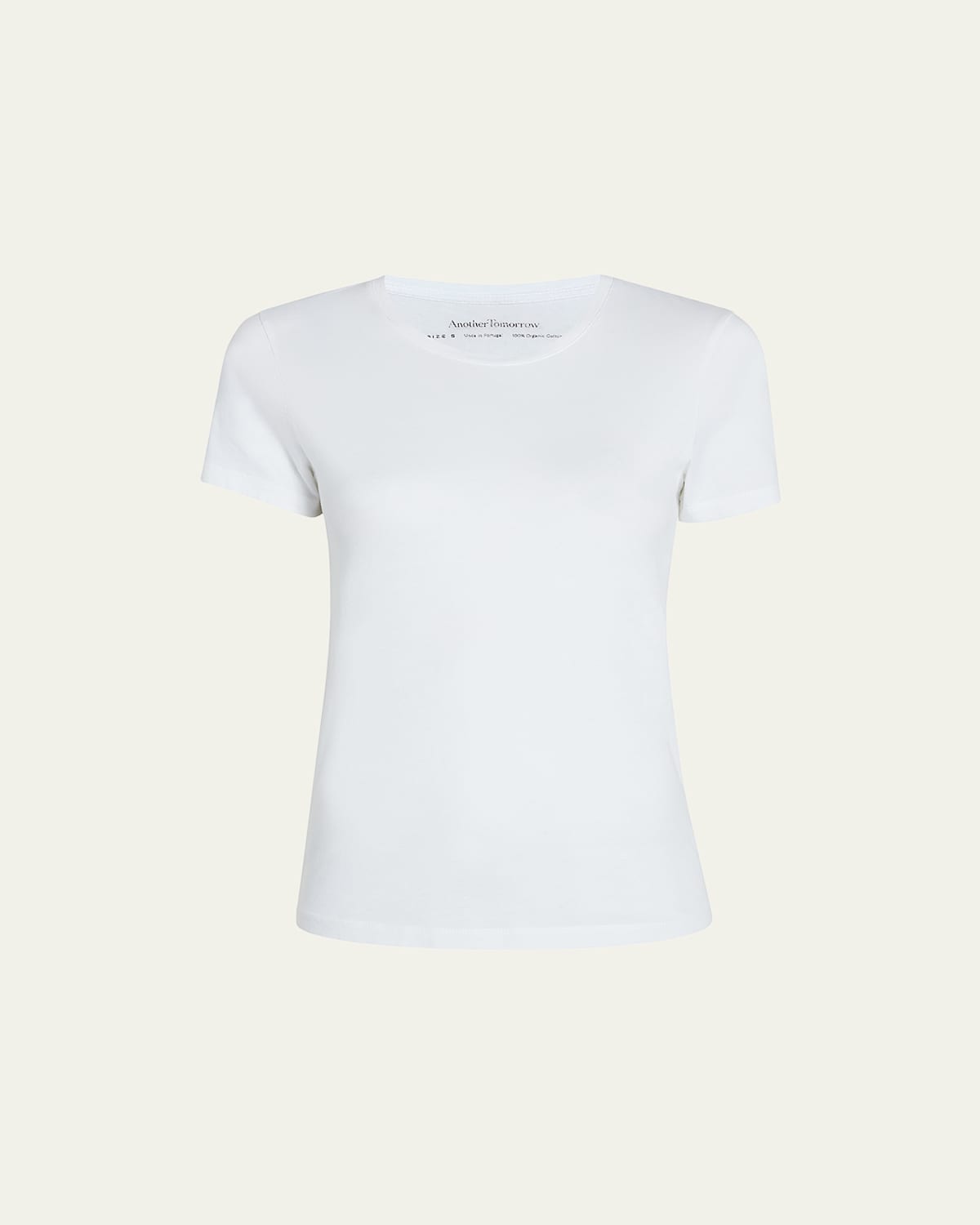 Another Tomorrow organic supima cotton blend tee with a slight kick at the sleeve Approx. 24.2"L from shoulder to hem Crew neckline Short sleeves; approx. 6.5"L Slim fit Pullover style Organic cotton supima Imported