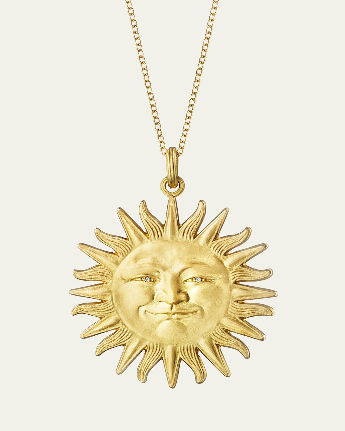 18K Yellow Gold Large Sunface Pendant Necklace with Diamond Eyes, 34mm
