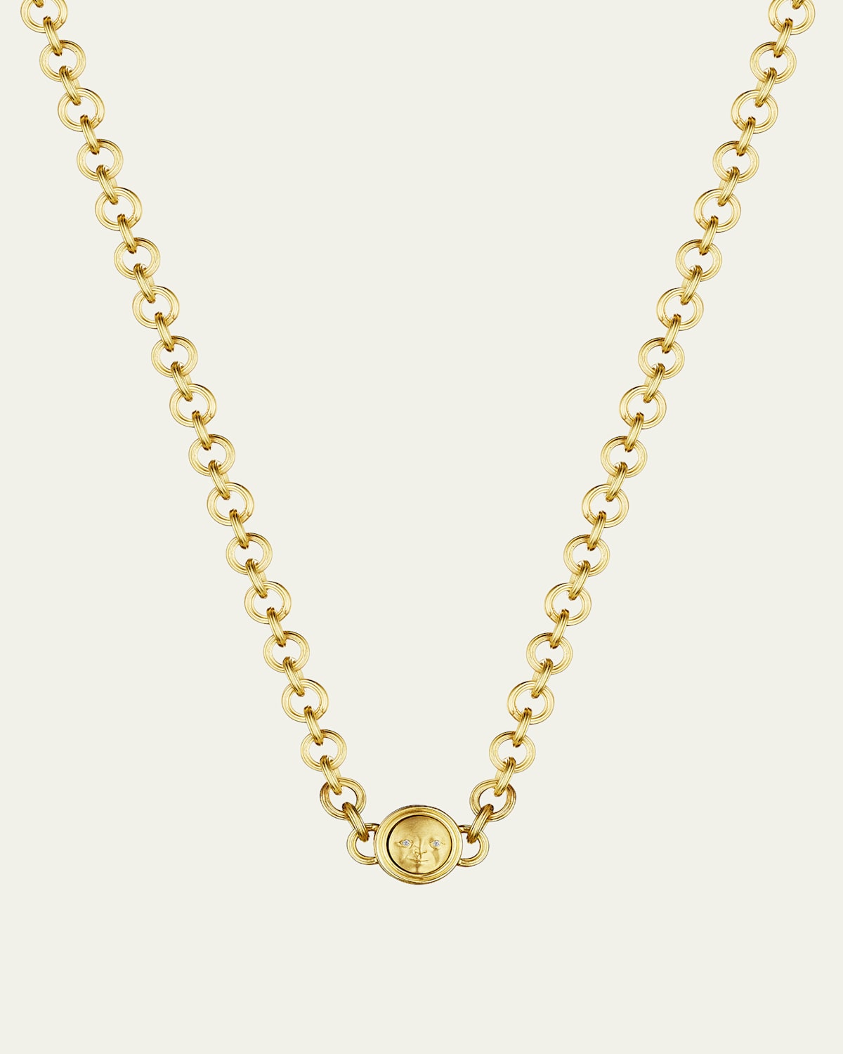 18K Yellow Gold Moon Chain Necklace with Diamonds