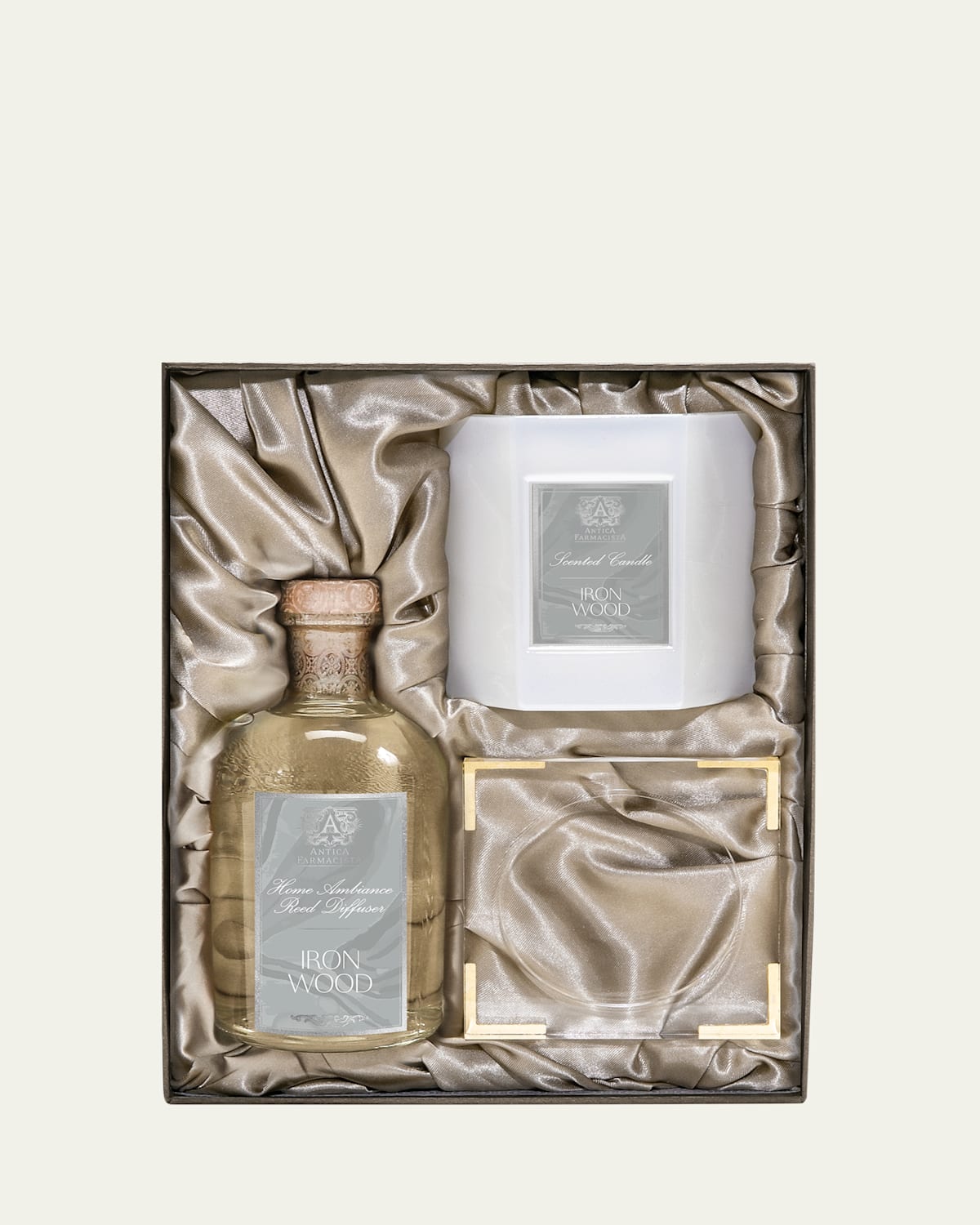A herbaceous medley of sage, ambrette seed, and basil blends with an aromatic accord of cardamom, black pepper, and black tea while an infusion of vetiver, birch, and violet leaf adds earthiness. Warm, creamy notes of sandalwood, vanilla, and rye balance with the cool, dry notes of ironwood and black walnut, completing this rich, flinty blend of herbs, woods, and spices. Antica allows you to make your giftgiving thoughtful, personalized and luxurious. This exquisite gift set includes a 250ml Reed Diffuser, a 9oz Hexagonal Candle and our Acrylic Diffuser Tray in a decorative twopiece crocembossed gift box, perfectly packaged and ready for gift giving. Diffuser: 8.5 oz. / 250 mL Candle: 9 oz. / 255
