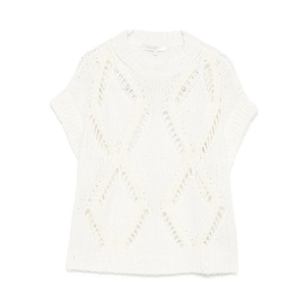 white diamond pattern knitted construction short sleeves round neck
