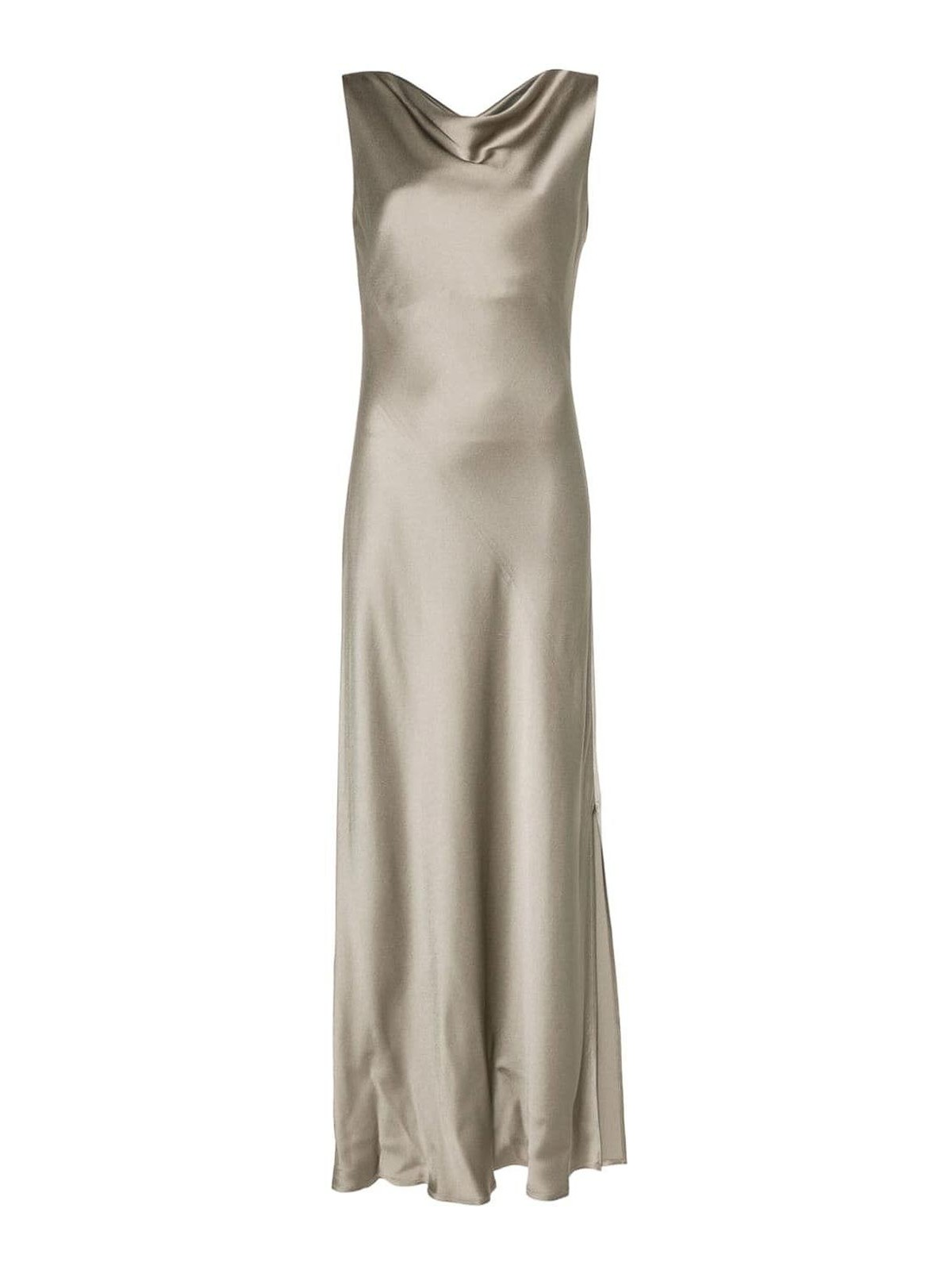 Finition marron olive, col bénitier, sans manches, fente latérale, longueur A, ligne