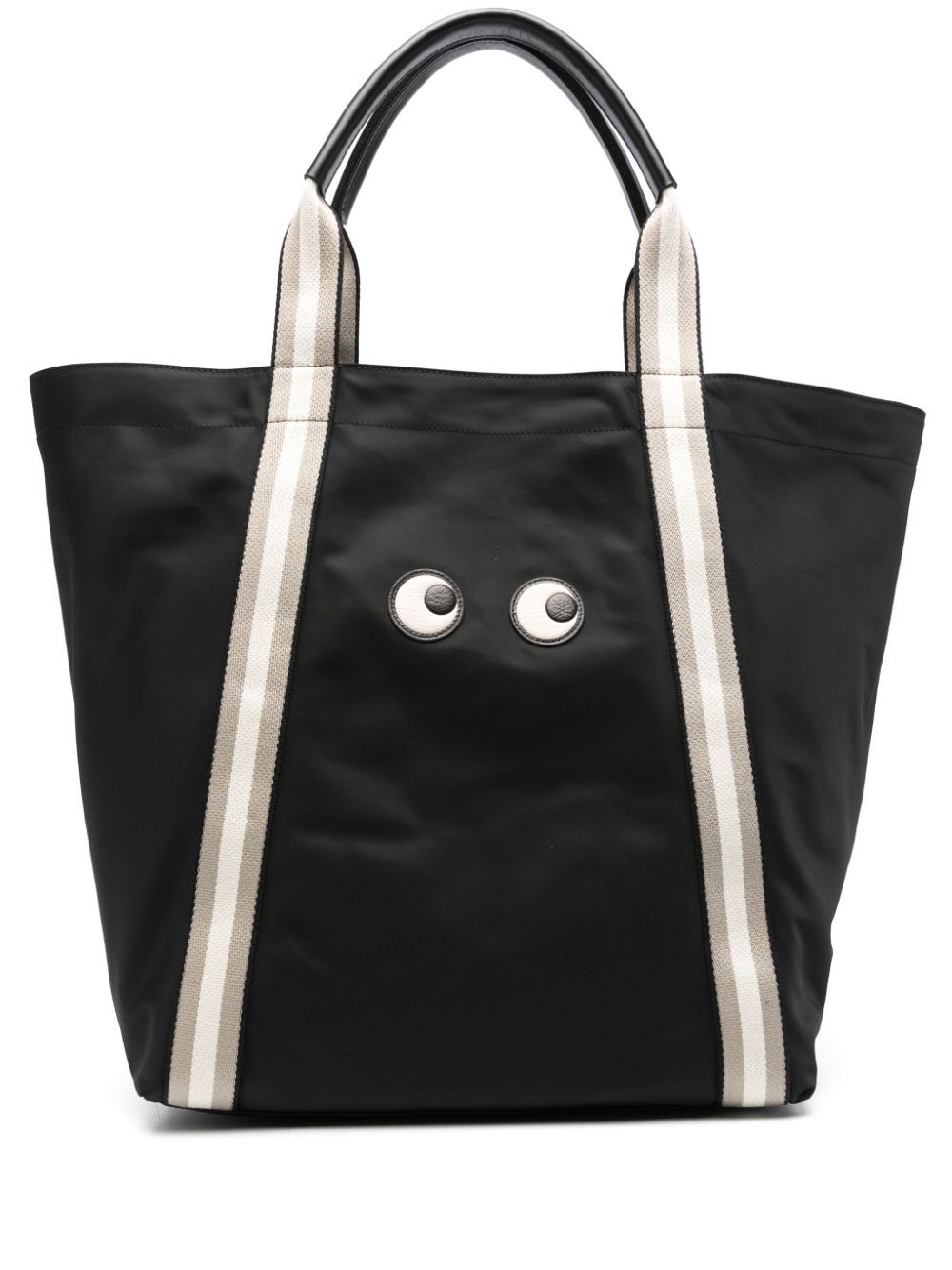 black ECONYL® textured finish rectangle body two rolled top handles stripe detailing Eye patch to the front logo patch to the rear main compartment internal logo patch internal patch pockets open top This piece comes complete with a protective dust bag. This item contains at least 50% materials which are certified or widely recognised as having a lower environmental impact through production and/or manufacturing processes that reduce water consumption and the use of harmful chemicals, or re-use by-products of the production process. Learn more about what makes a product Conscious on our Conscious Criteria page