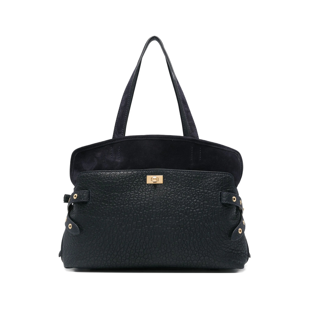 navy blue textured leather eyelet straps gold-tone hardware zip top closure