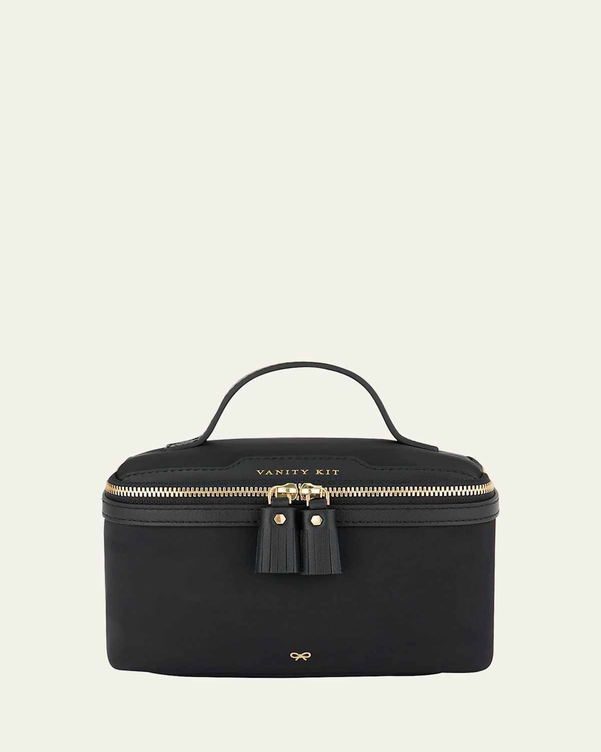 Anya Hindmarch cosmetic bag in recycled nylon and calf leather Flat top handle Twoway double zip top closures Interior, one zip pocket Approx. 5.9"H x 9.6"W x 6.7"D Imported