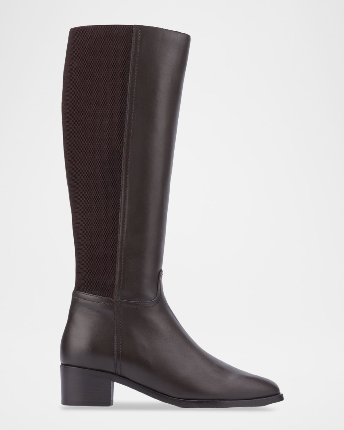 The "Ricarda" kneehigh boots by Aquatalia are designed in smooth calf leather with an elastic back panel and signature breathable lining for allday comfort 1.75 in / 45 mm stacked block heel Square toe Pullon style AQtempX lining Rubber outsole Made in Italy