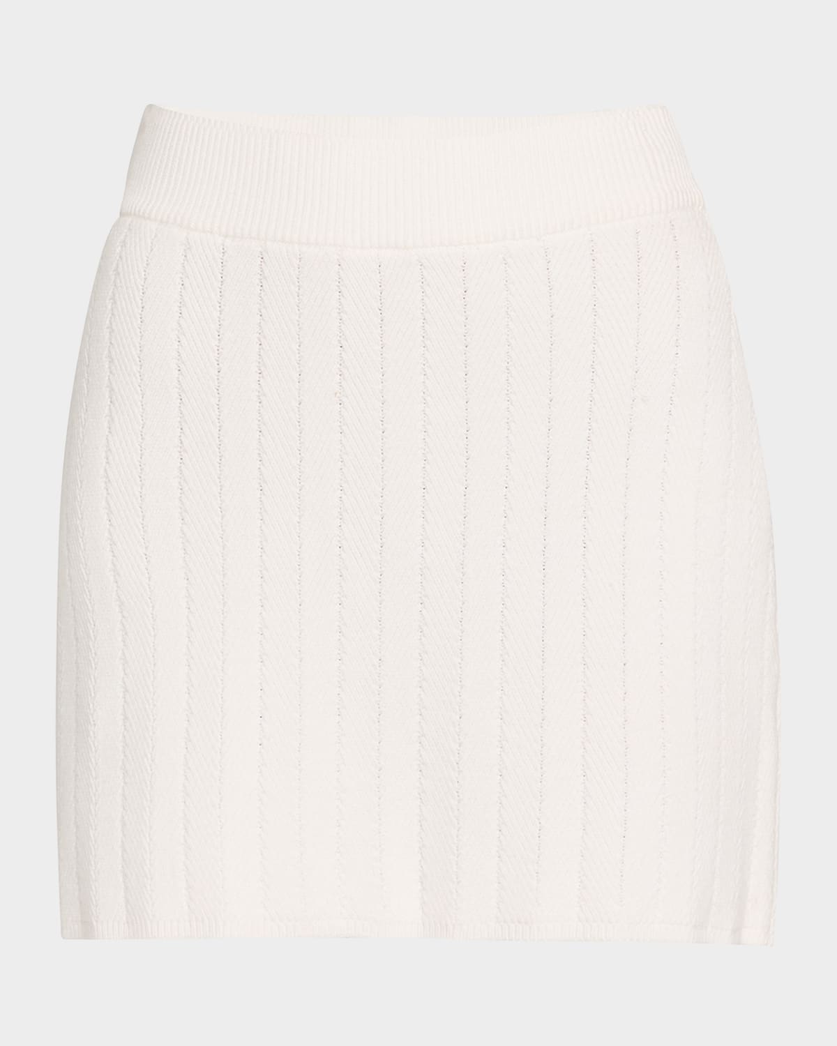 ARGENT mini skirt with herringbone textured stripes Sits high on the hips Ribbed waistband Hem falls above the knee Skirt falls straight from hip to hem Pullon style Viscose/polyester Unlined Hand wash or dry clean Imported