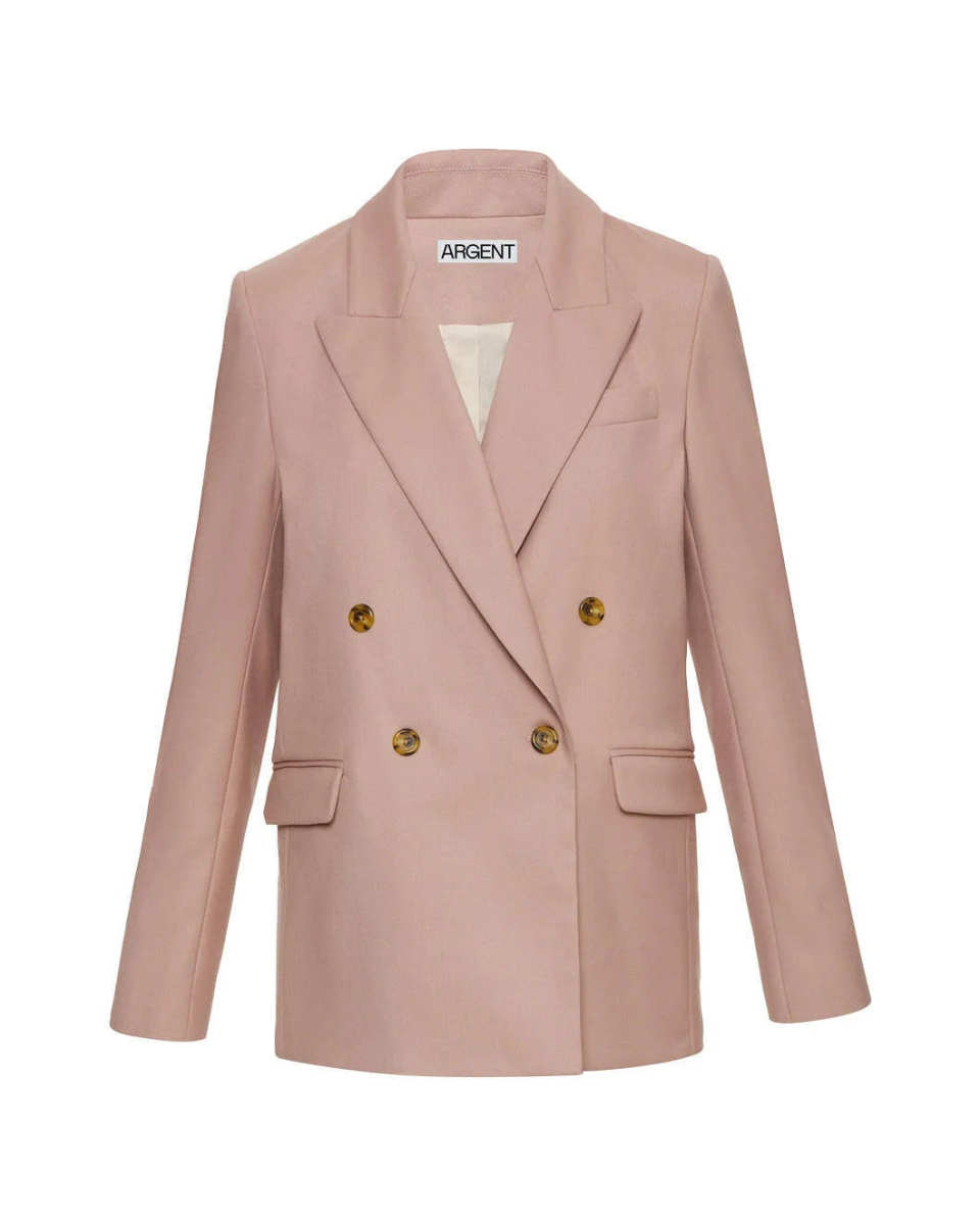 FINAL SALE The Peak Lapel Blazer by Argent in Dusty Rose. Seasonless Wool Slim fit shoulder, straight and loose body Interior Pockets Dusty Rose Double Breasted #PF24-0104