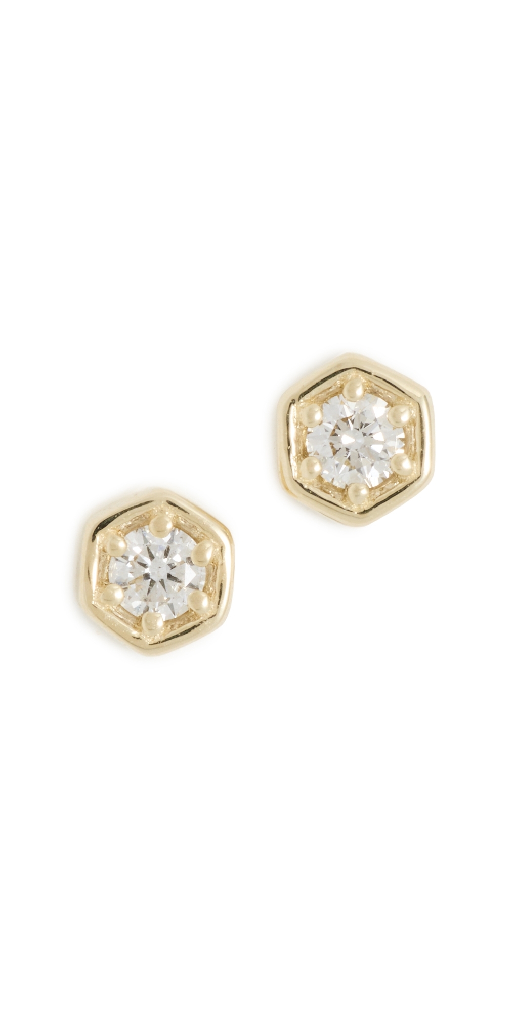 Polished finish. G-H round diamond (0.2 ct). Rated for SI1 clarity.. 14k gold. Post closure. Made in the USA. Measurements: Length: 0.5in / 1.0cm
