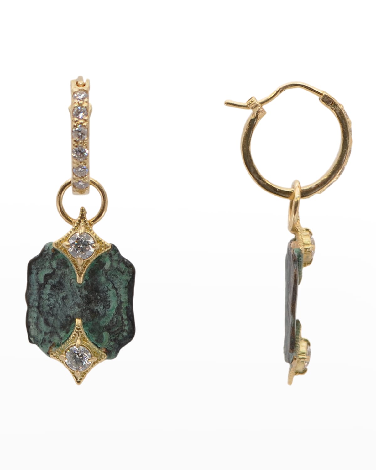 Armenta earrings 18karat yellow gold Drops with teal patina Round brilliant diamonds Total carat weight: 0.69 For pierced ears Made in USA