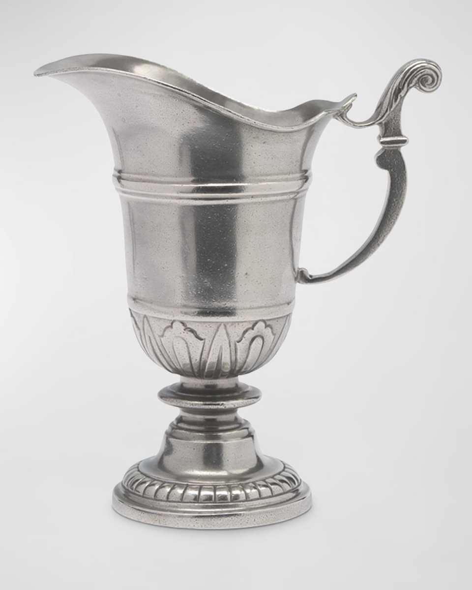 Pitcher handcrafted of pewter Approx. 8.5"D x 7.5"T Ideal vessel for handpicked flowers Item Weight (Lbs.): 3.0 Wipe clean with a damp cloth Made in Italy