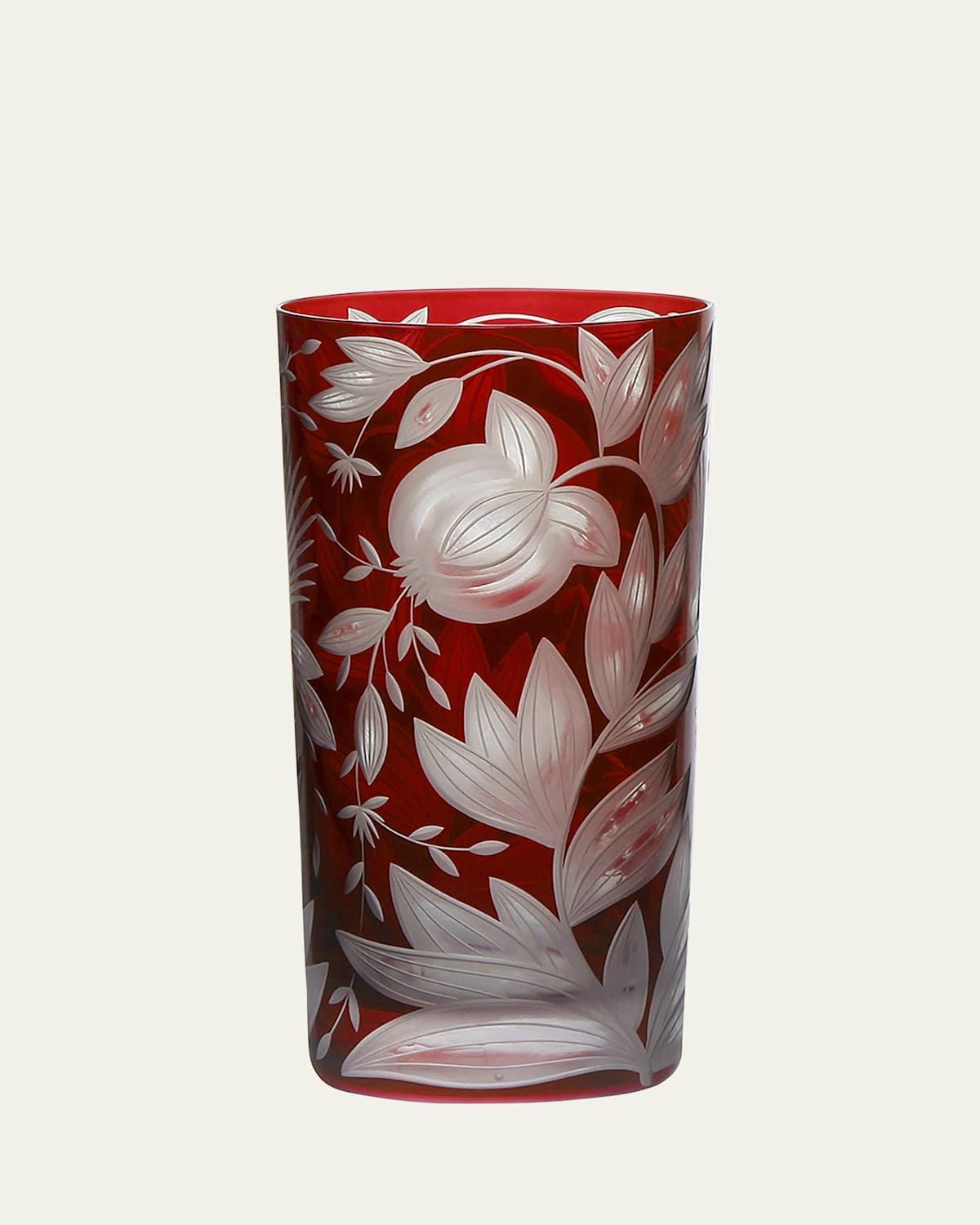 Inspired by wallpaper created by Dagobert Peche of the Wiener Werkstatte, an early 20thcentury Austrian design movement, the Verdure collection features richly handengraved blossoms and leafy vines. This tall, narrow glass is perfect not only for serving classic Highball drinks, but also for Gin amp; Tonics, Screwdrivers, Bloody Marys, and even beer. Handcrafted of mouthblown leadfree crystal Approx. 3.2"Dia. x 6.2"T Capacity, 17.6 oz. Hand wash immediately after use with a soft sponge and mild soap Dry immediately with a soft cloth Do not soak; not dishwashersafe Made in Czech Republic
