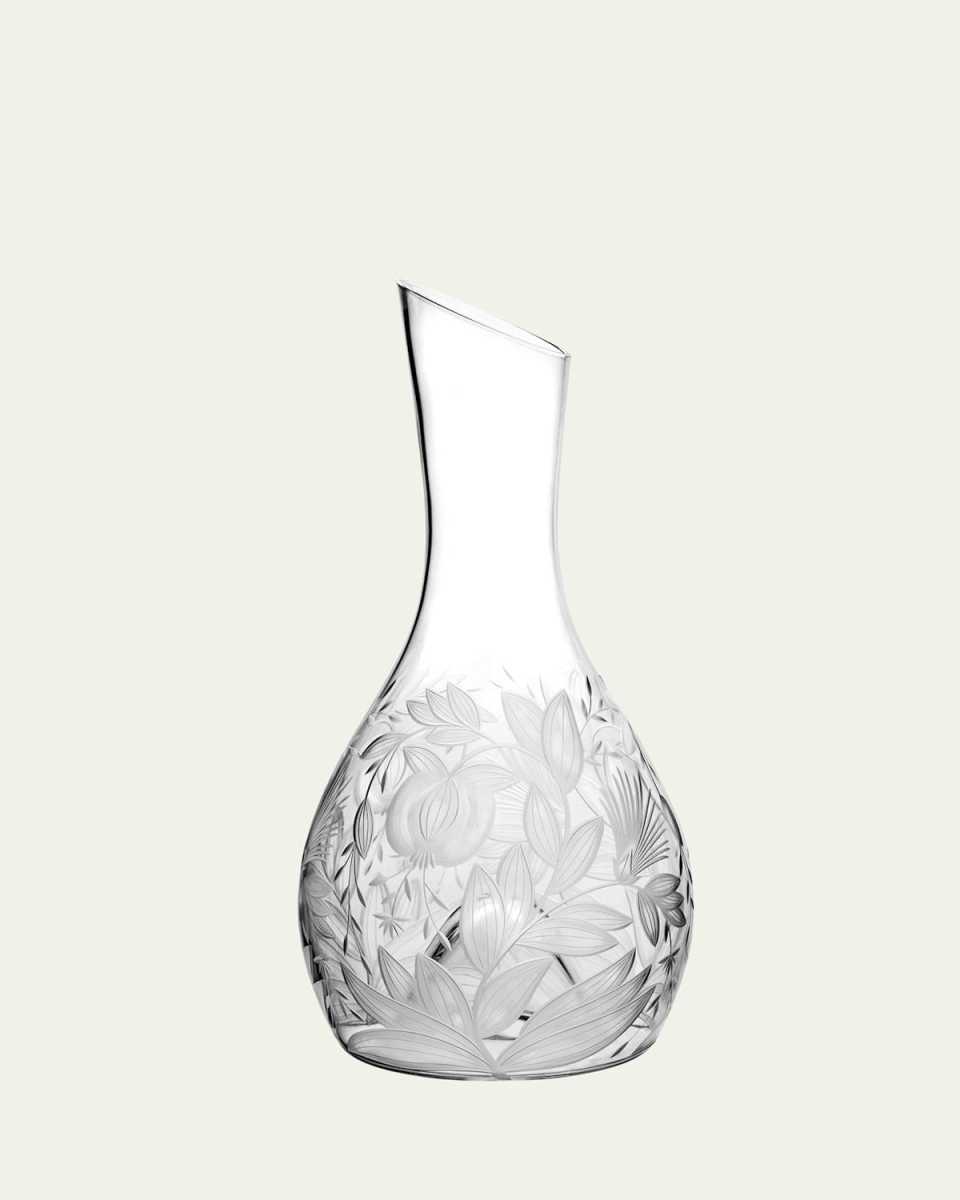 Inspired by wallpaper created by Dagobert Peche of the Wiener Werkstatte, an early 20thcentury Austrian design movement, the Verdure collection features richly detailed handengraved blossoms and leafy vines. Essential for decanting older wines or letting any wine "breathe" to release its full flavor potential, this Wine Carafe is an elegant and practical addition to any wellequipped bar or dining table. Handcrafted of mouthblown leadfree crystal Approx. 5.1"Dia. x 10.6"T Capacity, 37 oz. Hand wash immediately after use with a soft sponge and mild soap Dry immediately with a soft cloth Do not soak; not dishwashersafe Made in Czech Republic