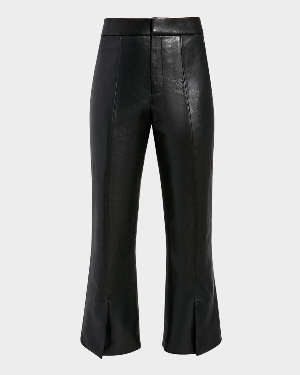 AS by DF "Rowan" recycled leather pants Approx. 24.5" inseam; 34" outseam High rise Back welt pockets Cropped at the ankle Flared legs Hidden hookandeye/zip fly Leather/polyester/polyurethane Lining: Polyester/spandex Leather method dry cleaning Imported