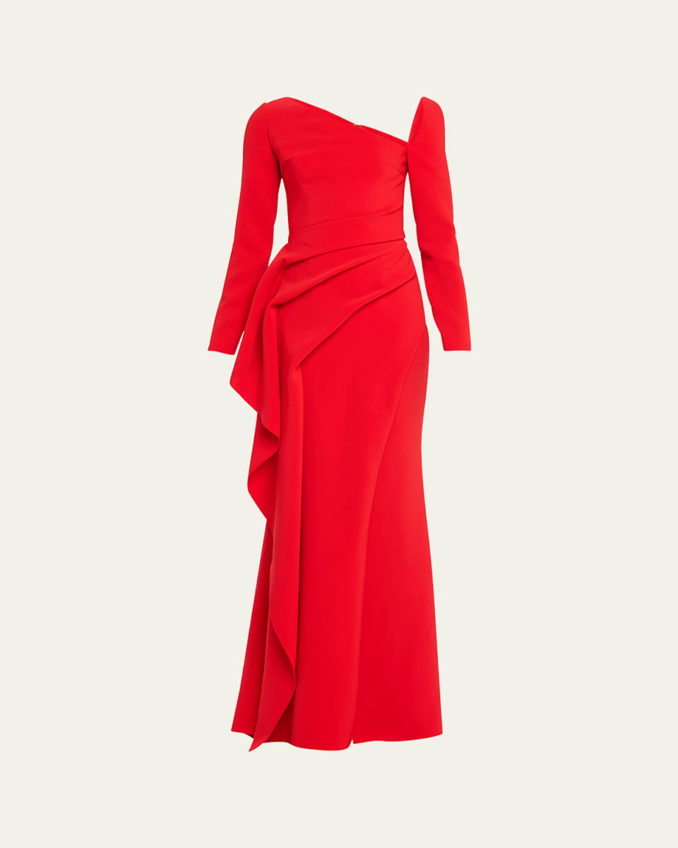 Alexis Asymmetric-Neck Long-Sleeve Draped Crepe Gown