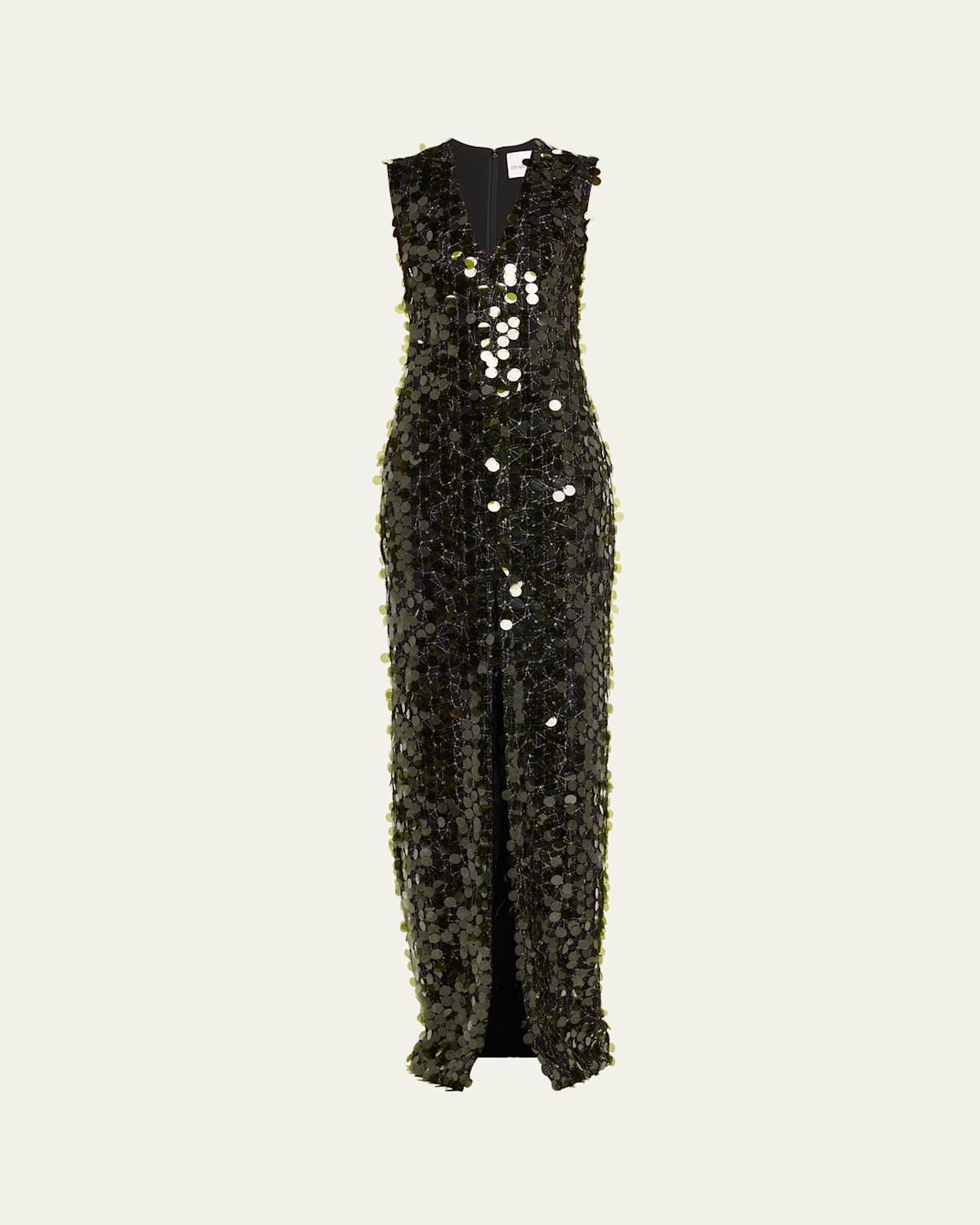 Atelier Prabal Gurung "Ava" sequinembellished gown V neckline Sleeveless Figurehugging silhouette Center front slit Floorsweeping hem Invisible back zip Nylon/polyamide Lining: Nylon Imported