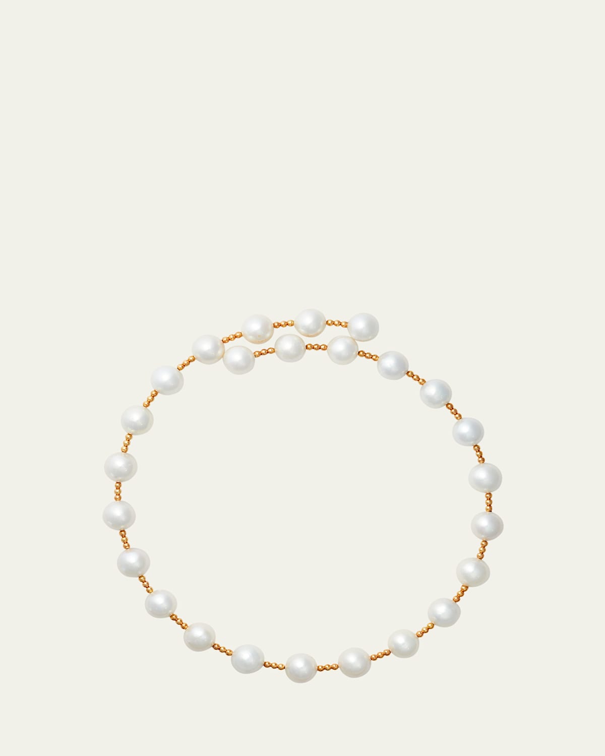 ATLAS LOVE collar necklace Beaded 18karat yellow gold Naturally white freshwater natural pearls Slipon style Wipe clean Made in USA