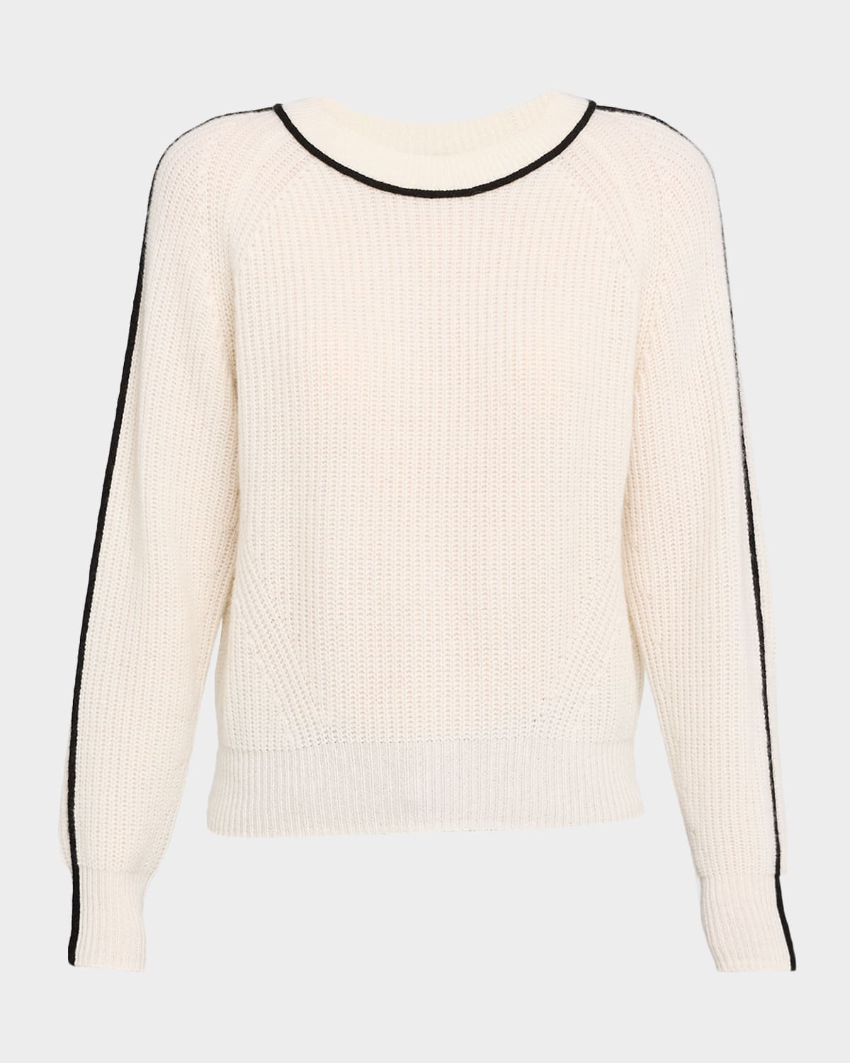 Contrast-Trim Shaker Stitch Cashmere Sweater