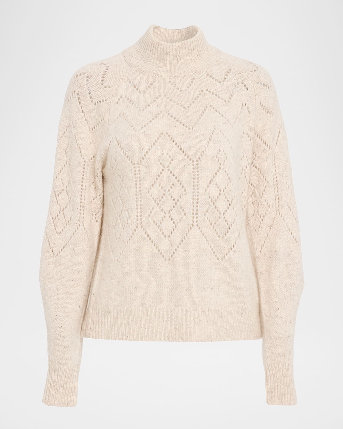 Mock-Neck Pointelle Knit Cashmere Sweat