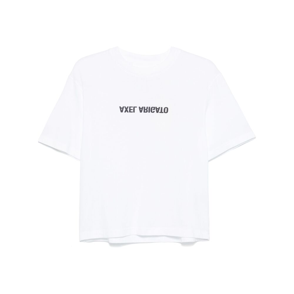 white crew neck short sleeves logo print to the front