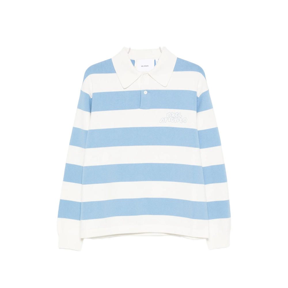white and blue striped logo detail long sleeves polo collar button fastening