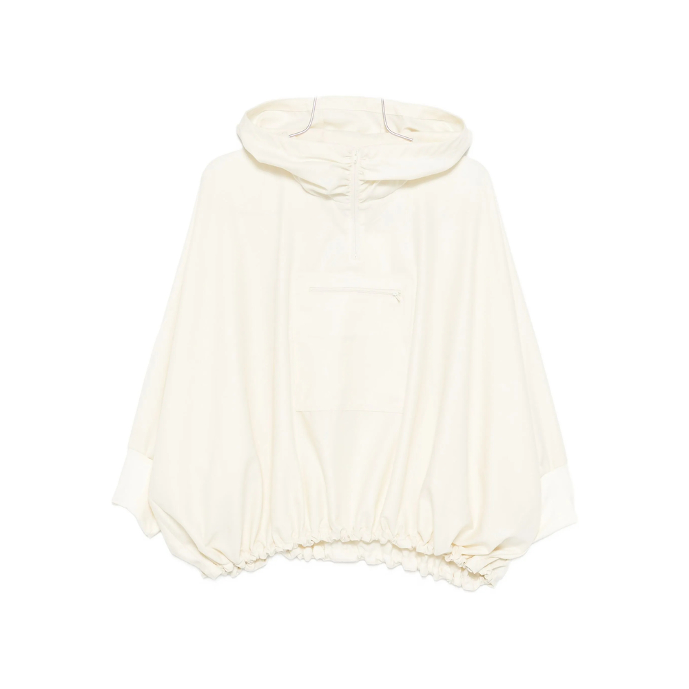 beige zip-fastening pocket detail elasticated hem slouchy hood long sleeves