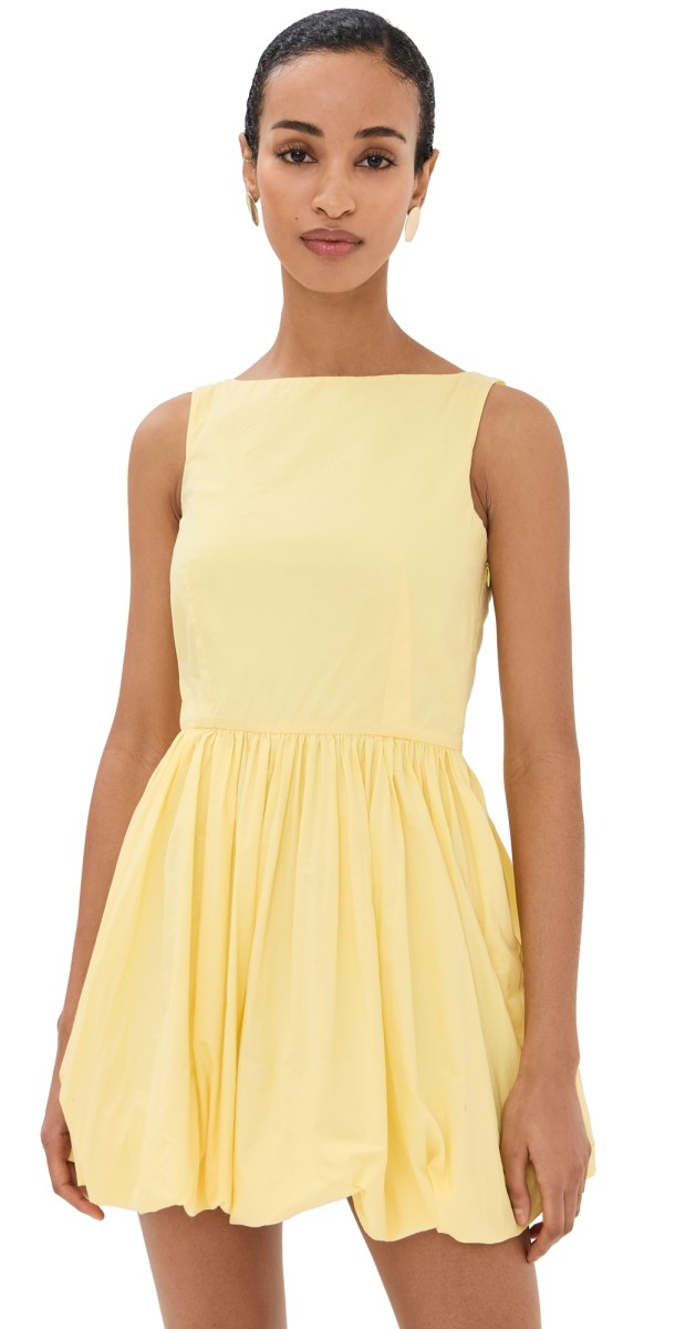 Fabric: Lightweight, super-stretch poplin. Bubble hem. Mini length. Boat neck. Sleeveless. Hidden zip at side. Shell: 97% cotton/3% lycra spandex. Trim: 100% cotton. Lined. Lining: 100% cotton. Wash cold. Imported, India. Measurements: Measurements from size S Length: 30.75in / 78.0cm, from shoulder