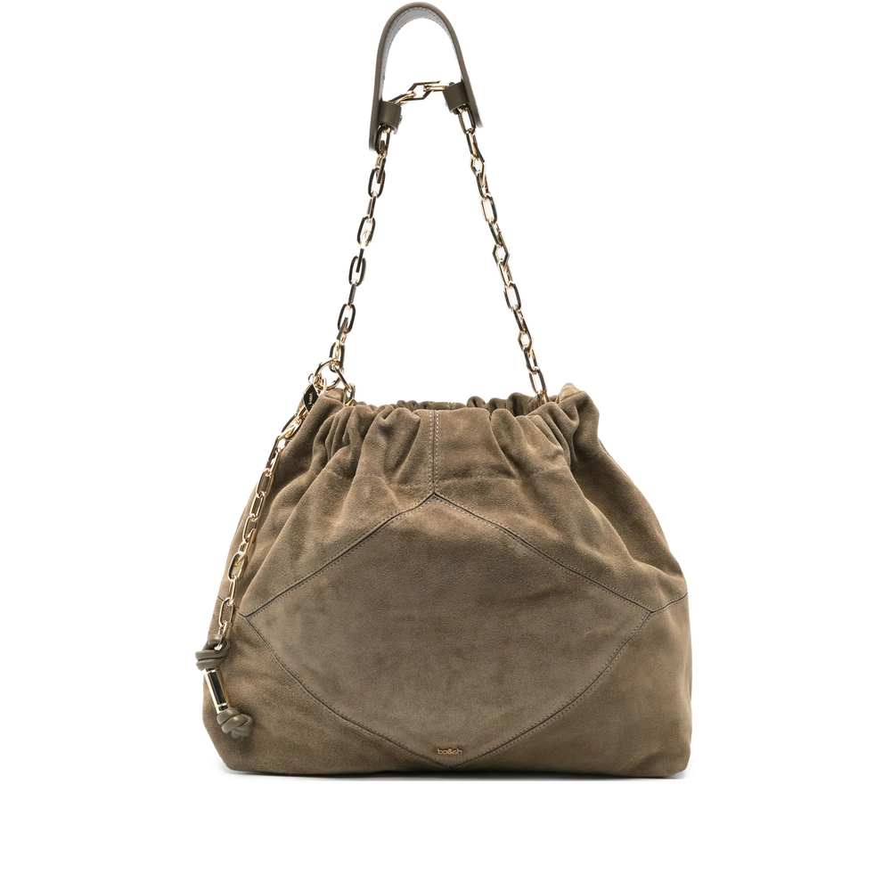 khaki calf suede material geometric panelled design chain strap