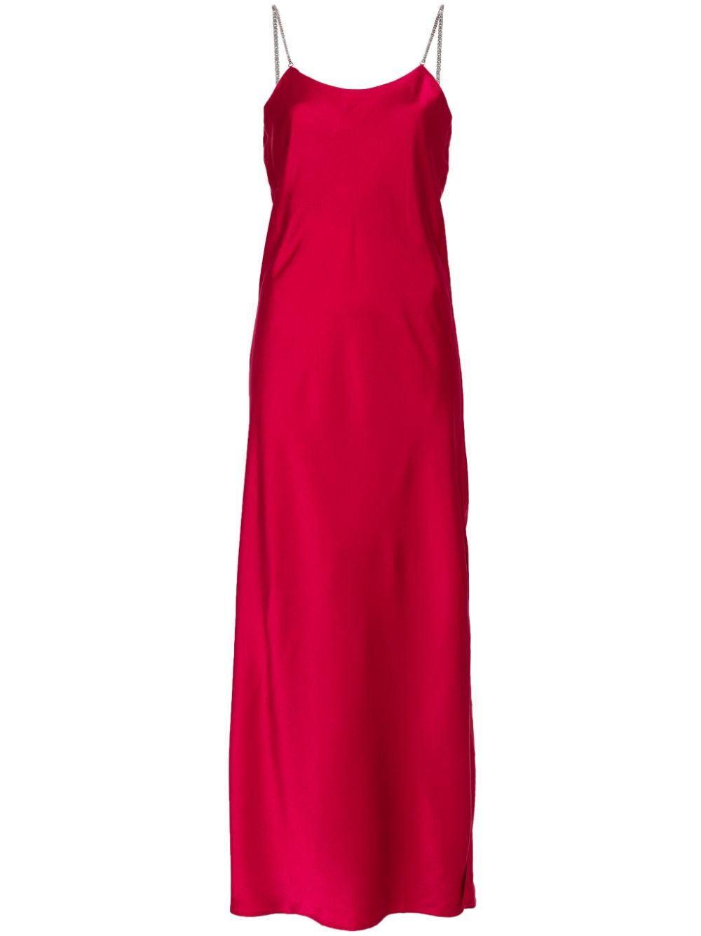 raspberry pink concealed side fastening chain-link trim scoop neck sleeveless shift style side slit backless straight hem long length