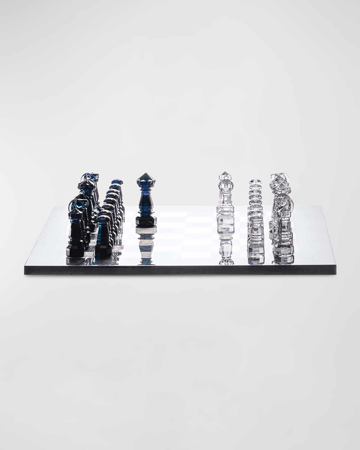 Baccarat has created this majestic chess set in clear and Midnight crystal with exotic wood. A Meilleur Ouvrier de France (The best craftsman in France) cut all the chess pieces by hand. Handcrafted of crystal and wood Approx. 14"Sq. Wipe clean Made in France