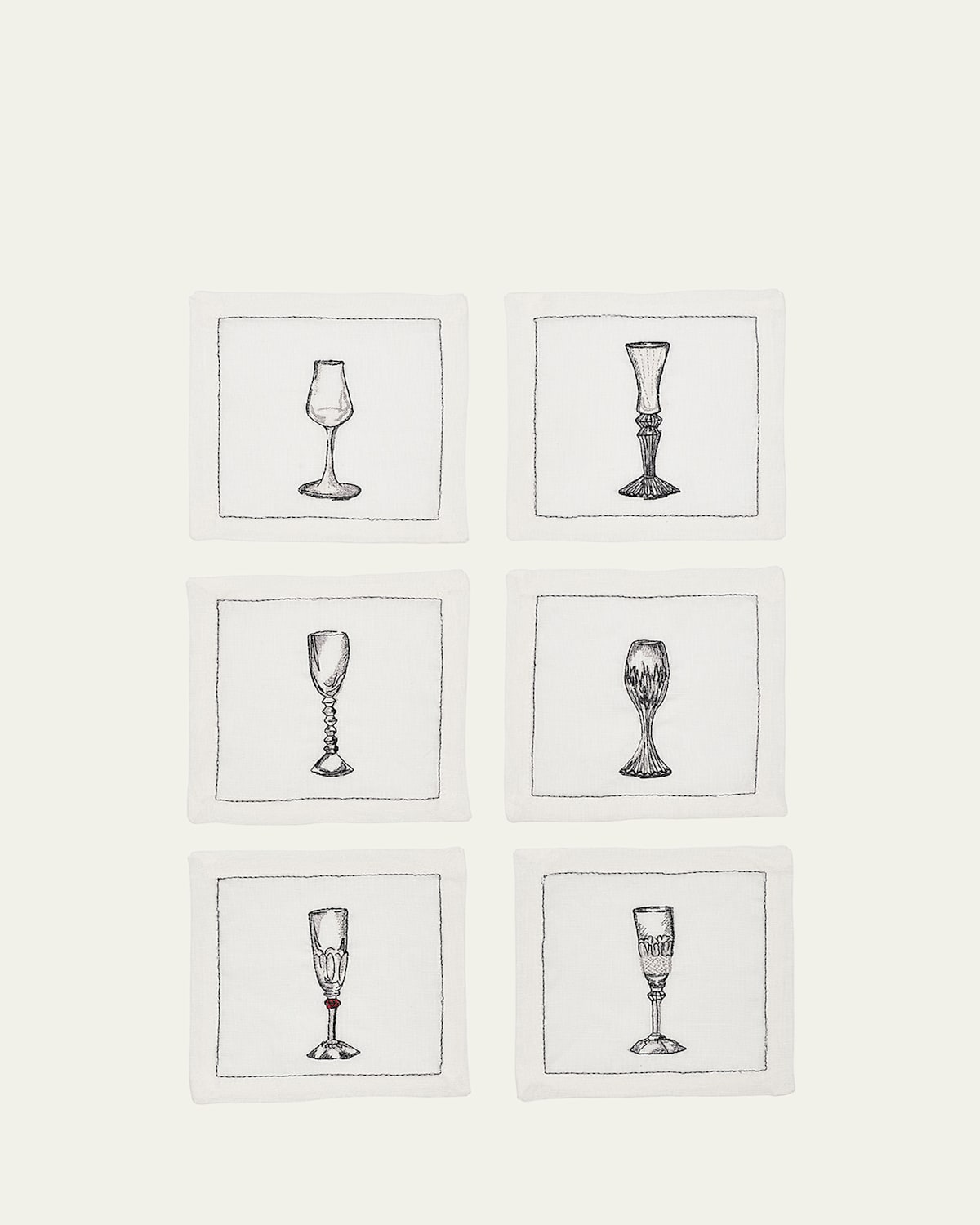 Cocktail napkins are made of linen Approx. 6"Sq Machine wash cold Steam iron while damp on reverse Set of six Imported