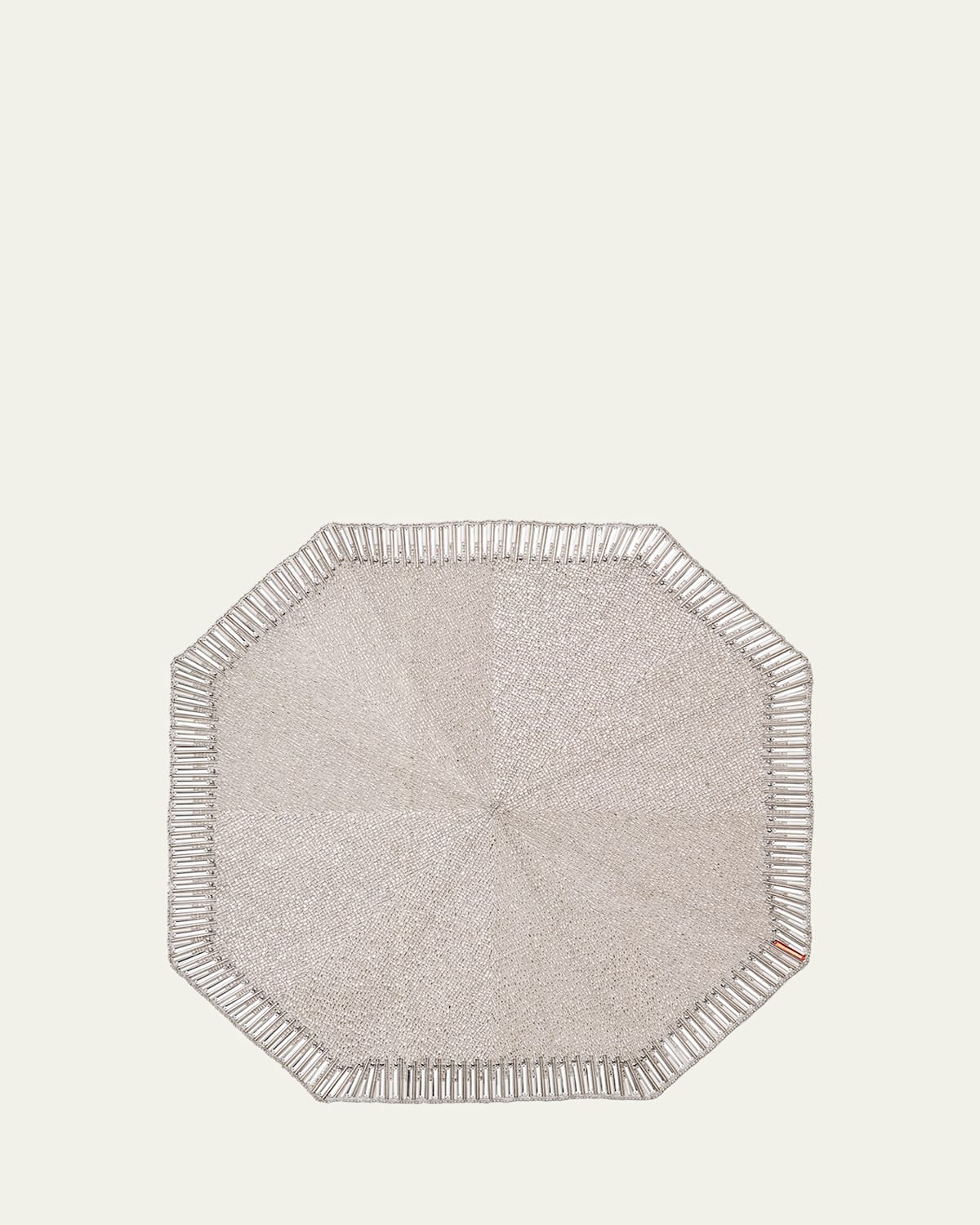Placemat is made of glass and plastic beads on cotton backing Approx. 15"L x 15"W Spot clean with soft toothbrush using mild soap amp; water Iron on reverse as required Imported