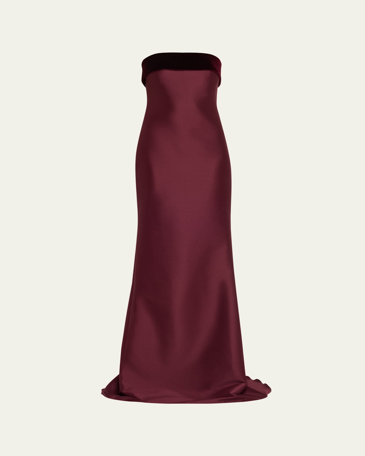 Strapless Velvet-Trim Mikado Trumpet Gown