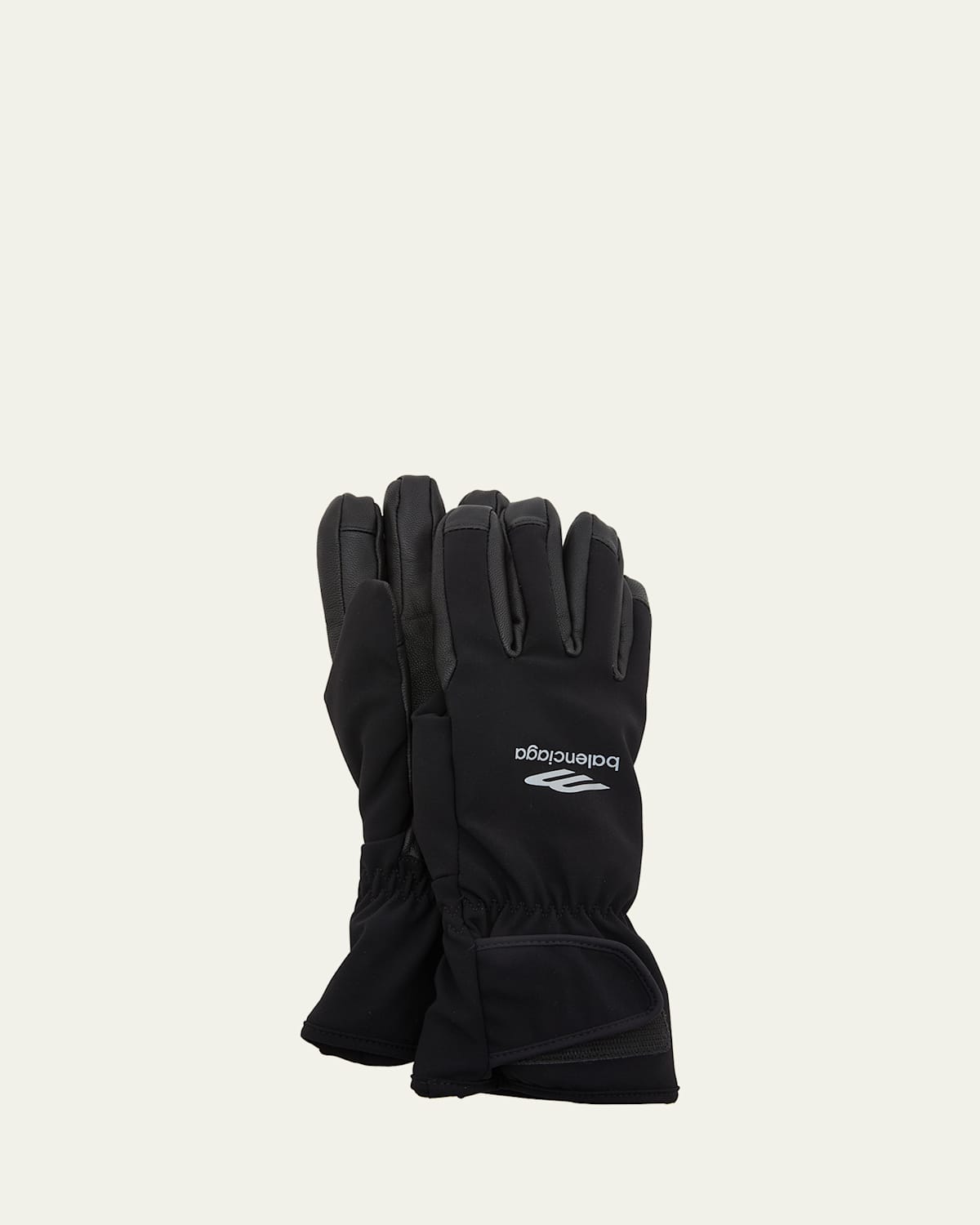 Balenciaga ski gloves with reinforced leather palm Reflective effect 3B sports icon artwork Adjustable hook and loop strap at wrist Tear and rip resistant Nylon/polyamide Made in Italy