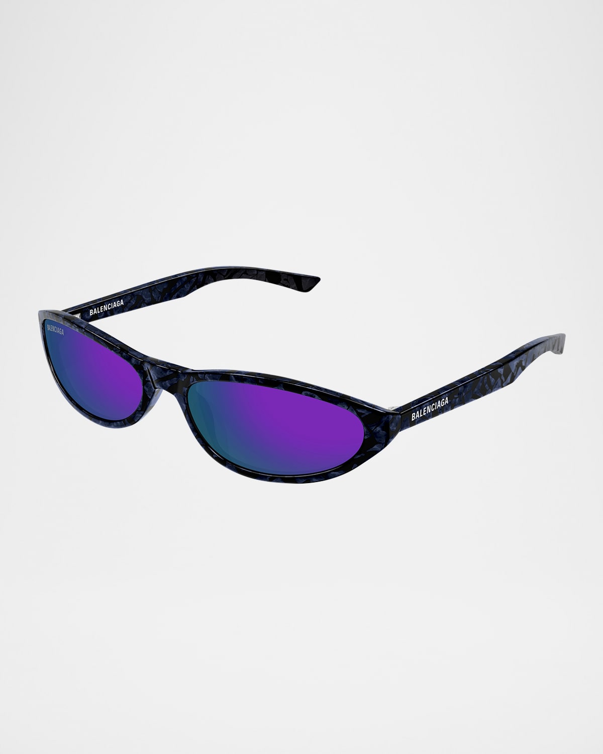 Balenciaga "BB0007S" oval sunglasses in acetate Eye/bridge/temple (in mm): 5918135 Solid lenses Saddle nose bridge Logo lettering on temples Wide, tapered arms 100% UVA/UVB protection Made in Italy