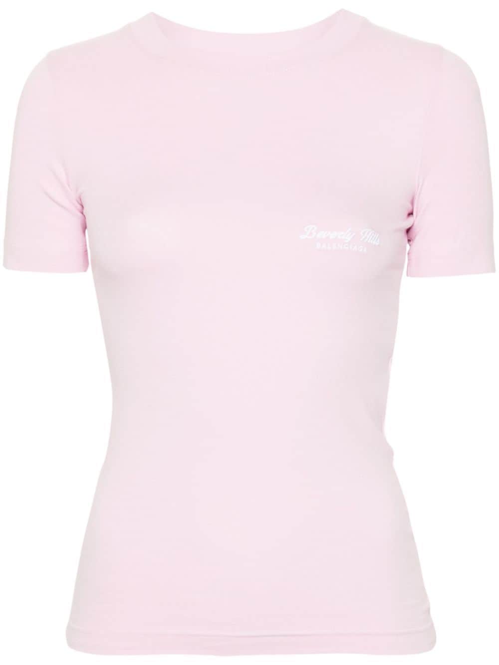 light pink cotton blend stretch-jersey ribbed crew neck short sleeves embroidered logo at the chest straight hem