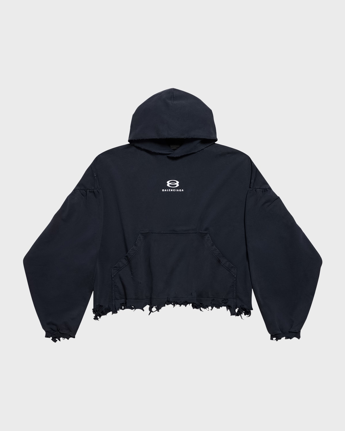 Balenciaga hoodie in archetype fleece with unity sports icon print and distressed details Hooded neckline Drop shoulders Long sleeves Banded cuffs and hem Cropped style Oversized fit Pullover style Cotton Dry cleaning Made in Portugal